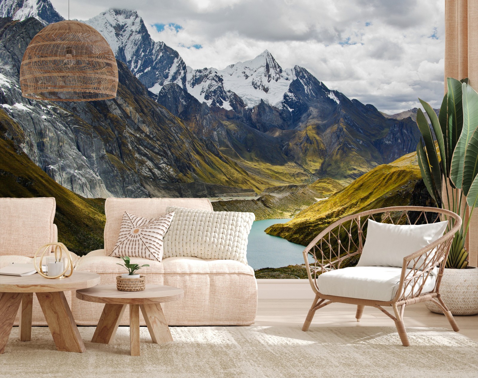 Fototapete Türkisblauer bergsee unter schneegipfeln