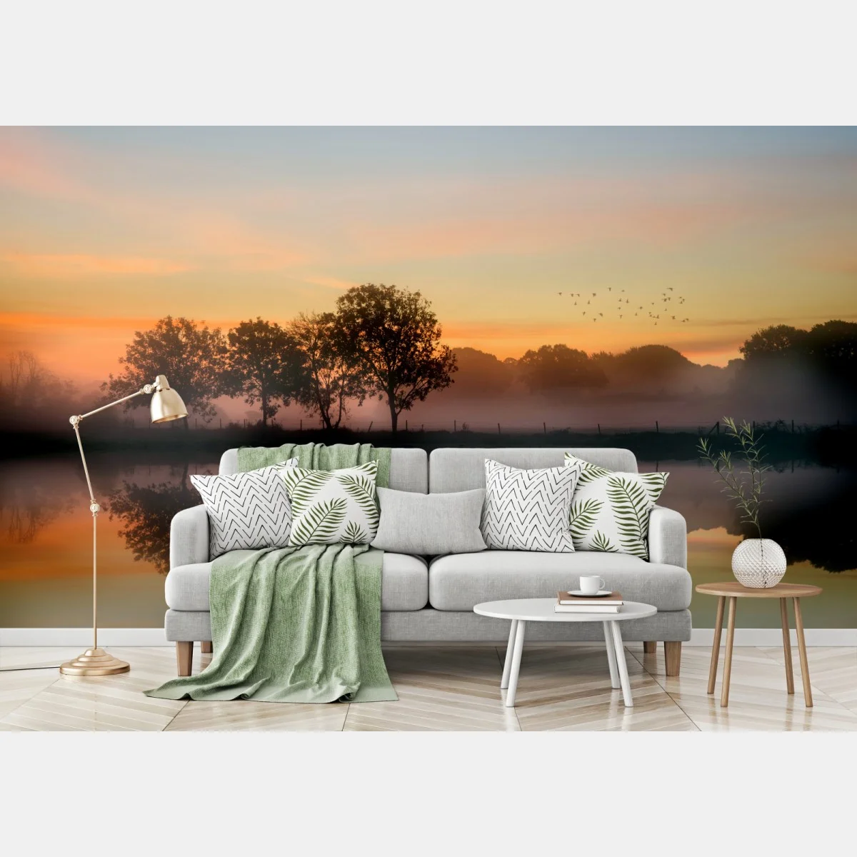 Fototapete Nebliger herbstlicher sonnenaufgang über Englischer landschaft