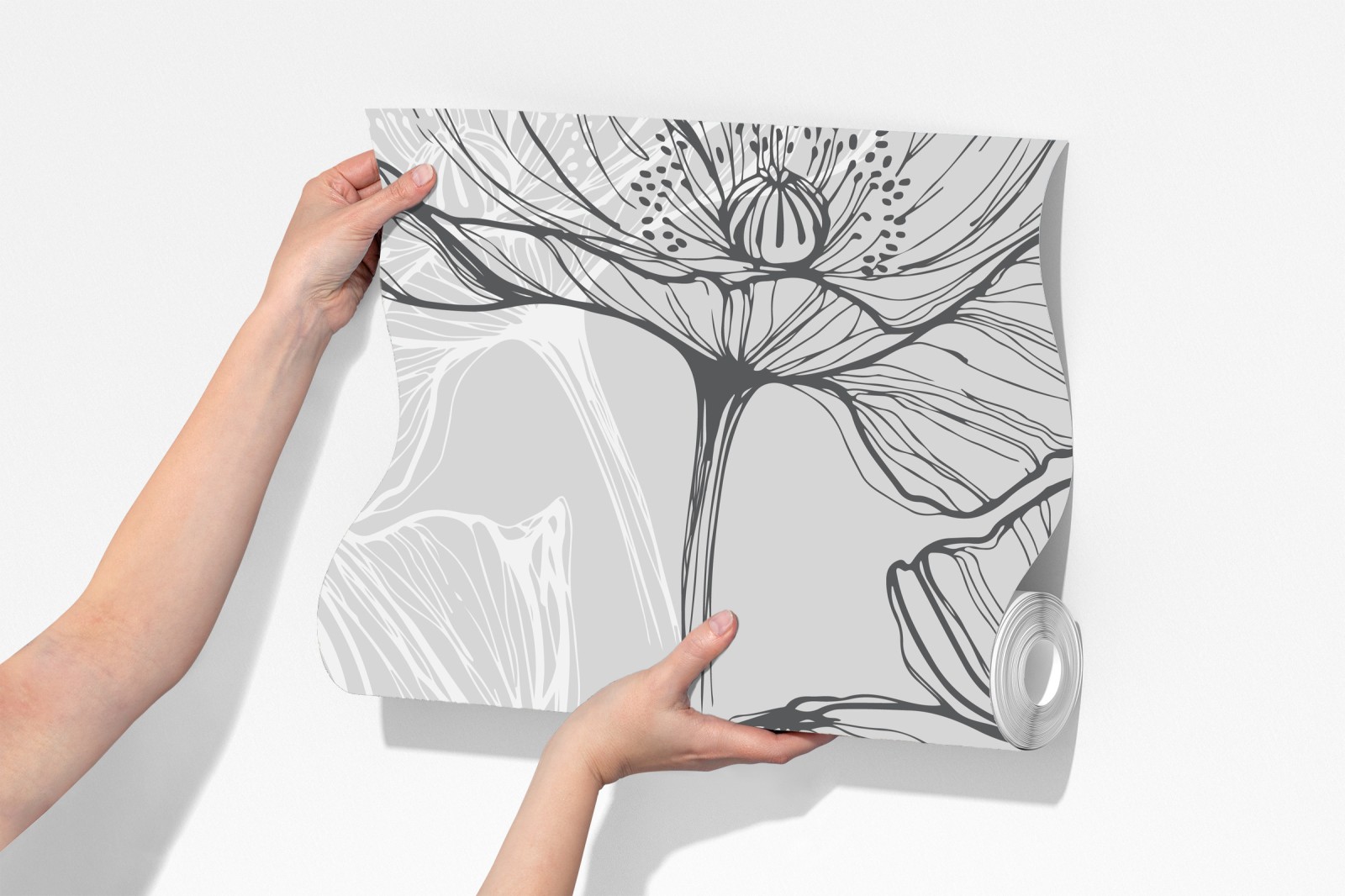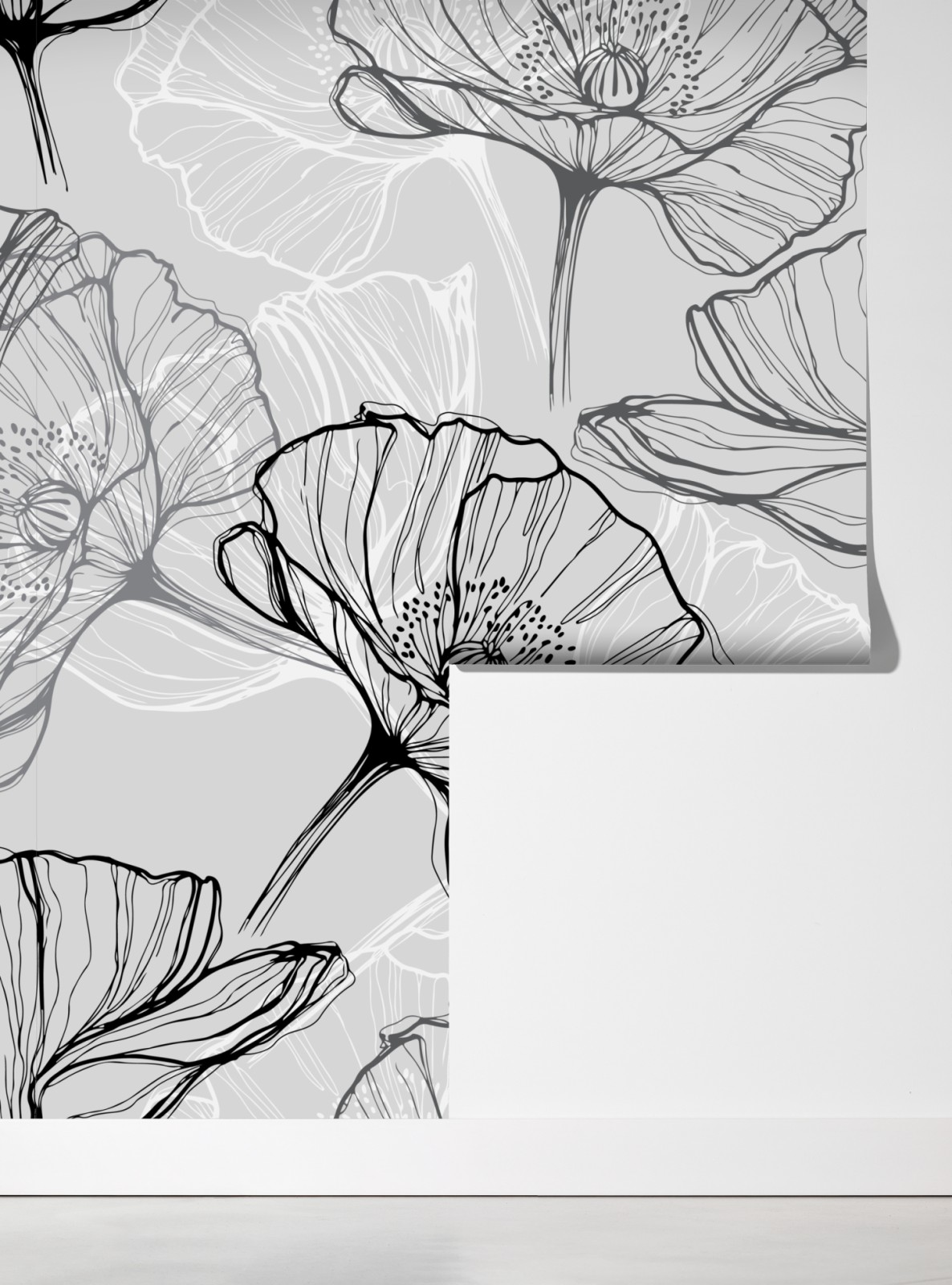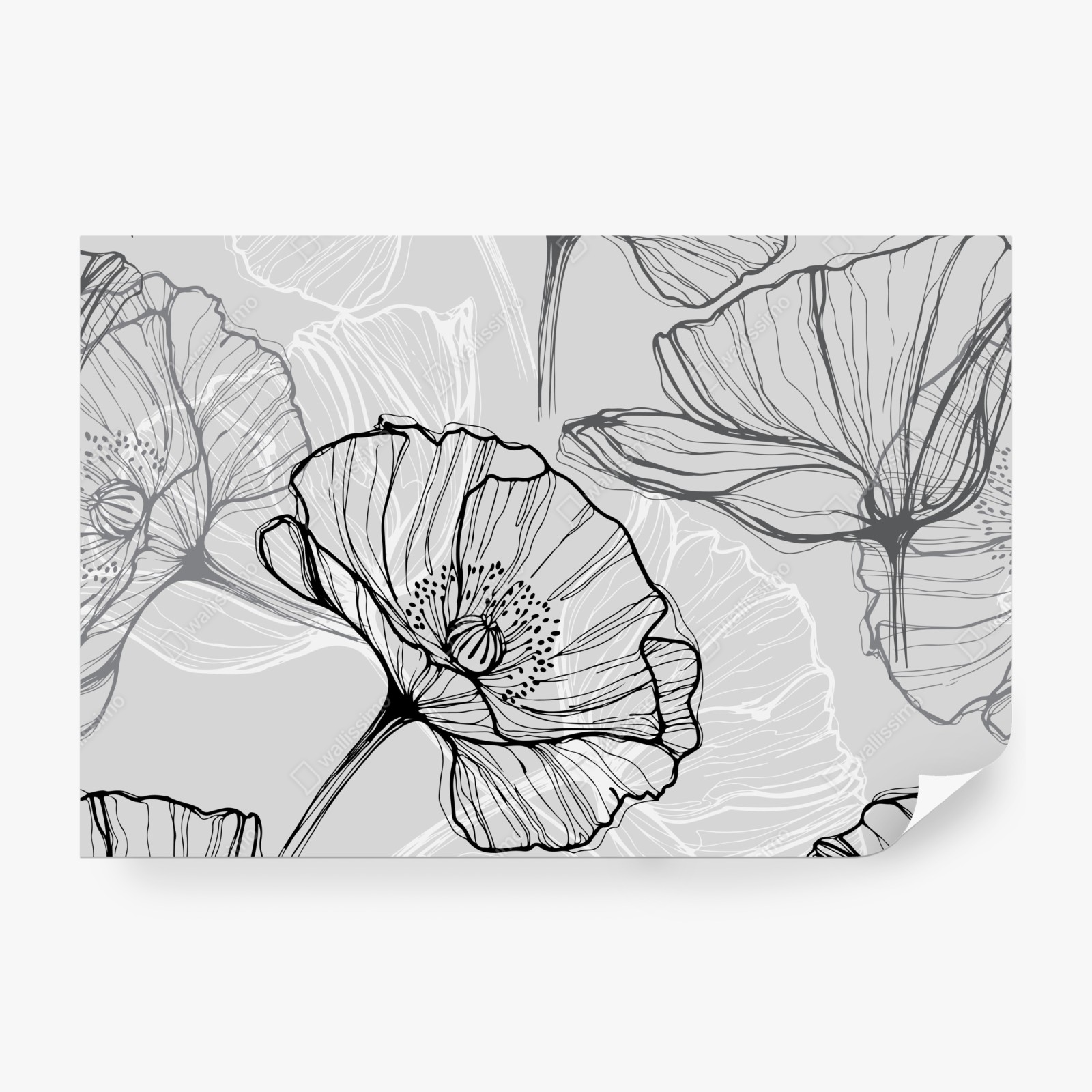 Fototapete zarter grauer mohn in linienzeichnung