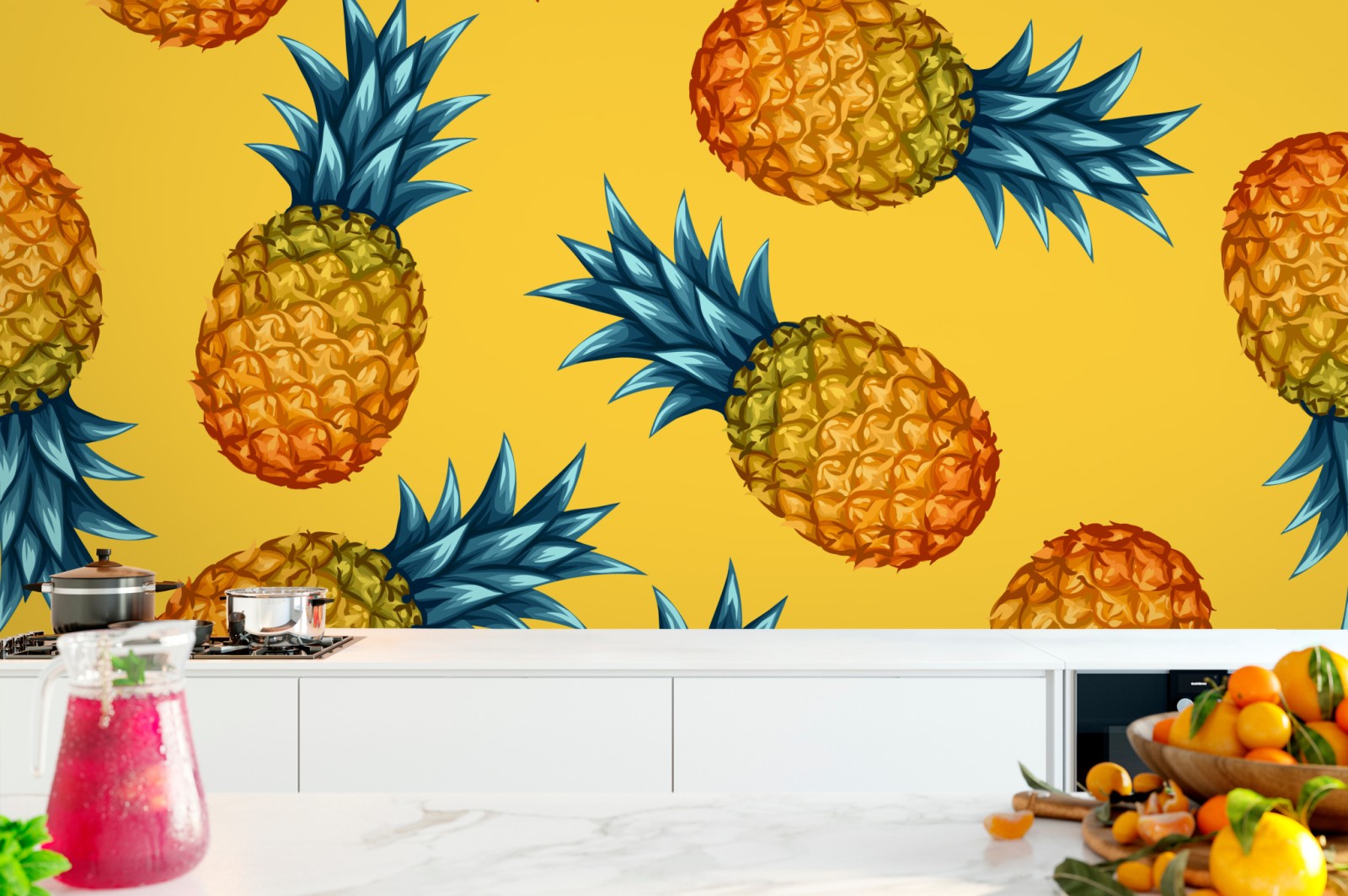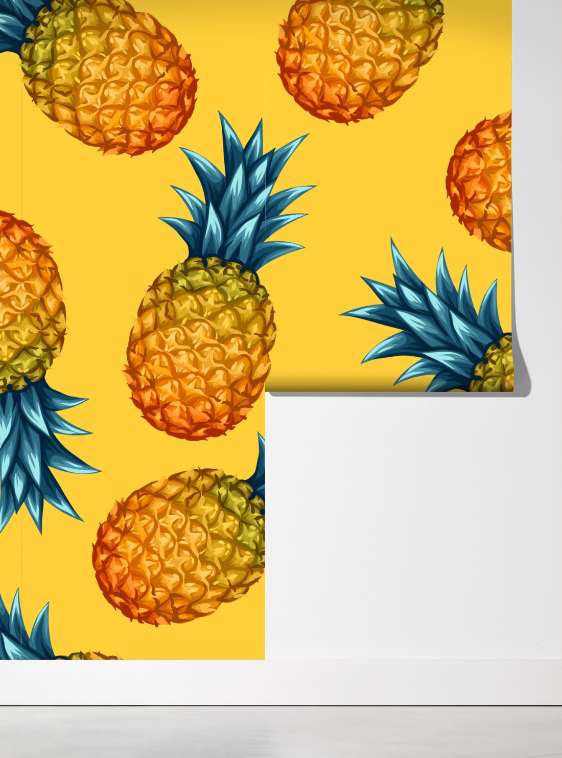 Lebhaftes tropisches Ananasmuster bringt sommerliche Stimmung in jeden Raum und setzt einen fröhlichen Farbakzent.