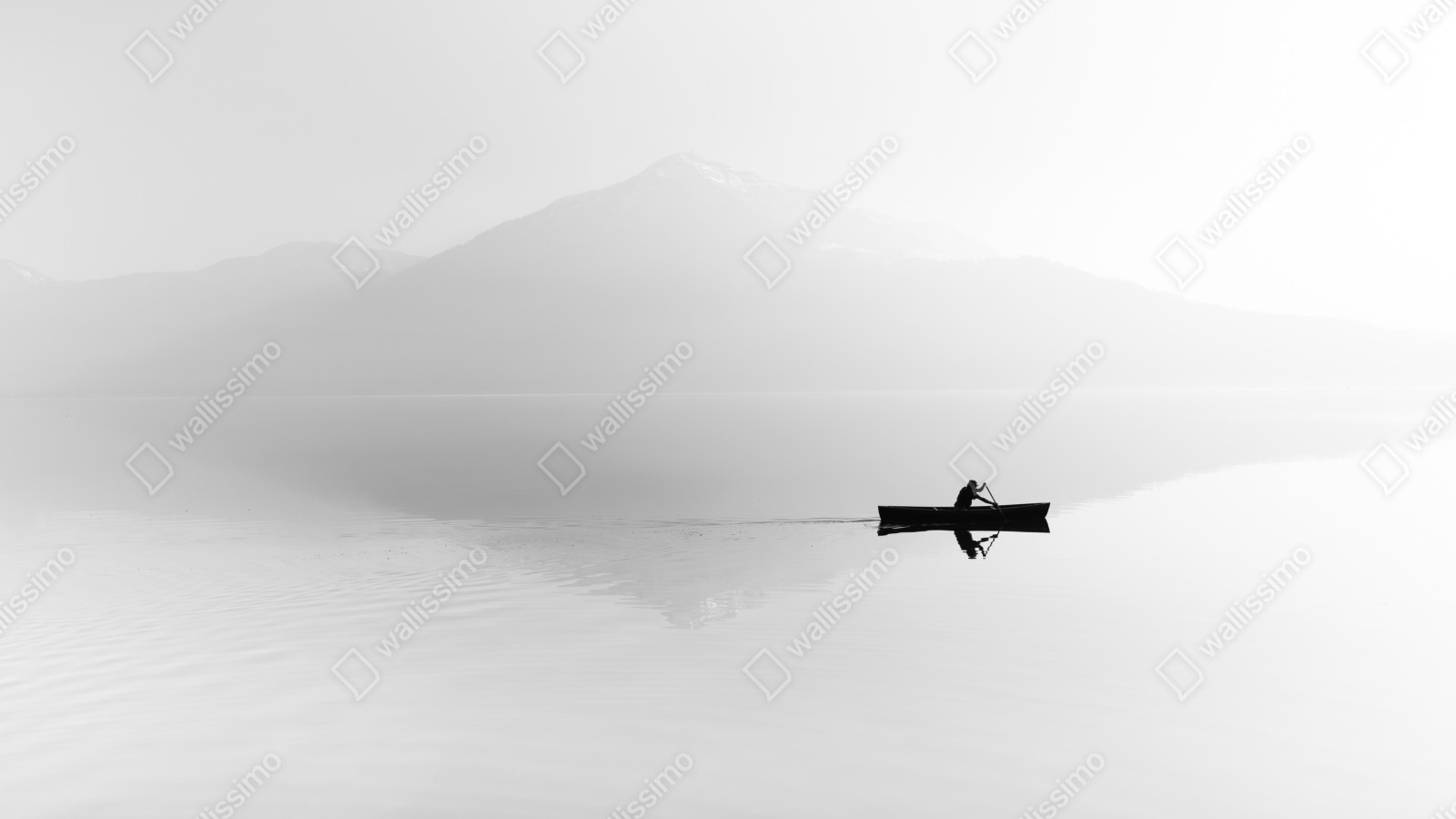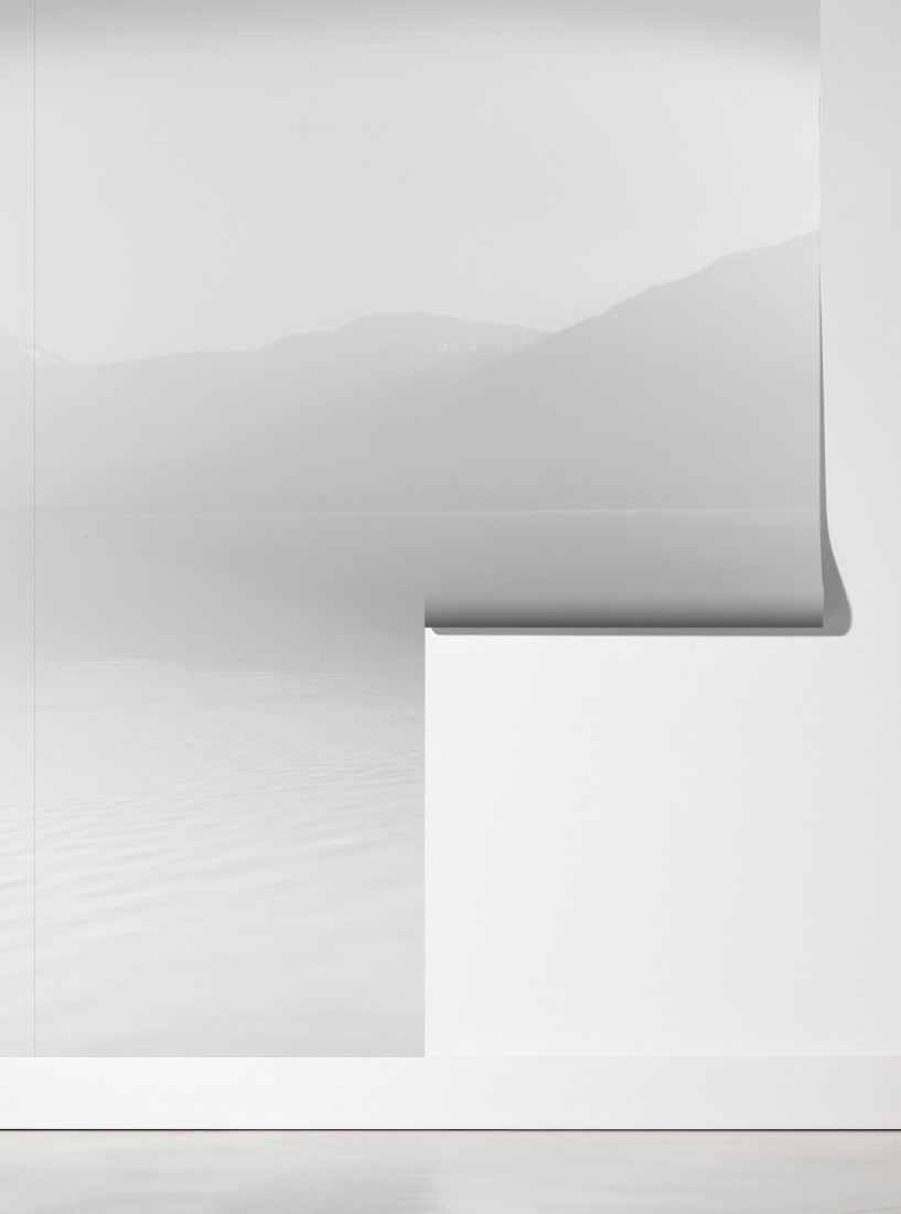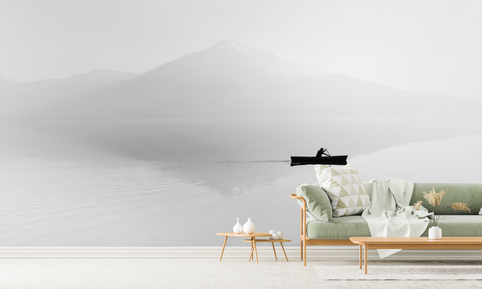Erleben Sie ruhige Minimalistik mit dieser nebligen See-Silhouette, die jedem Raum Tiefe verleiht.
