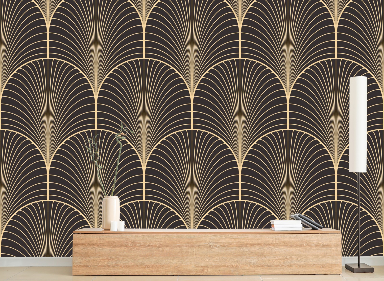 Verleihen Sie Ihrem Raum mit einem goldenen art deco fächermuster Eleganz und eine zeitlose Luxusatmosphäre.
