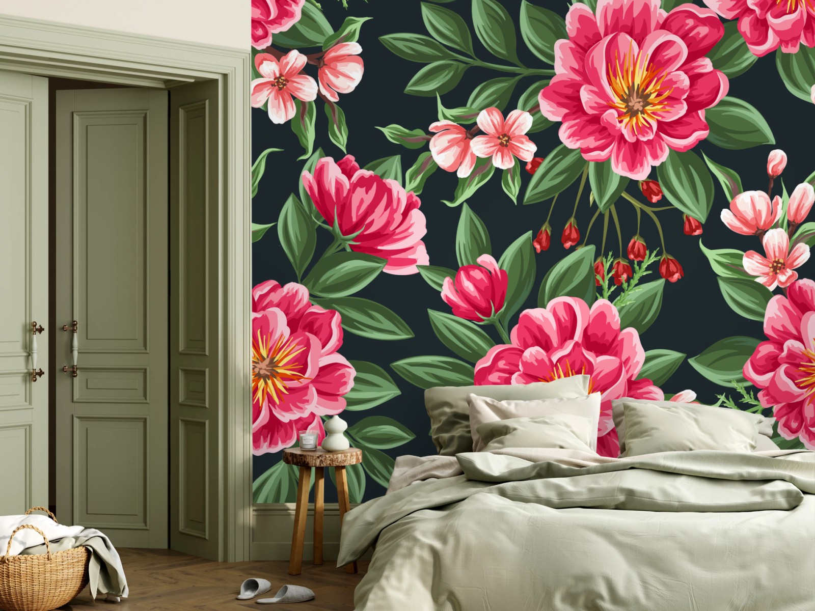 Fototapete Rosa aquarell blumenmuster auf dunklem hintergrund