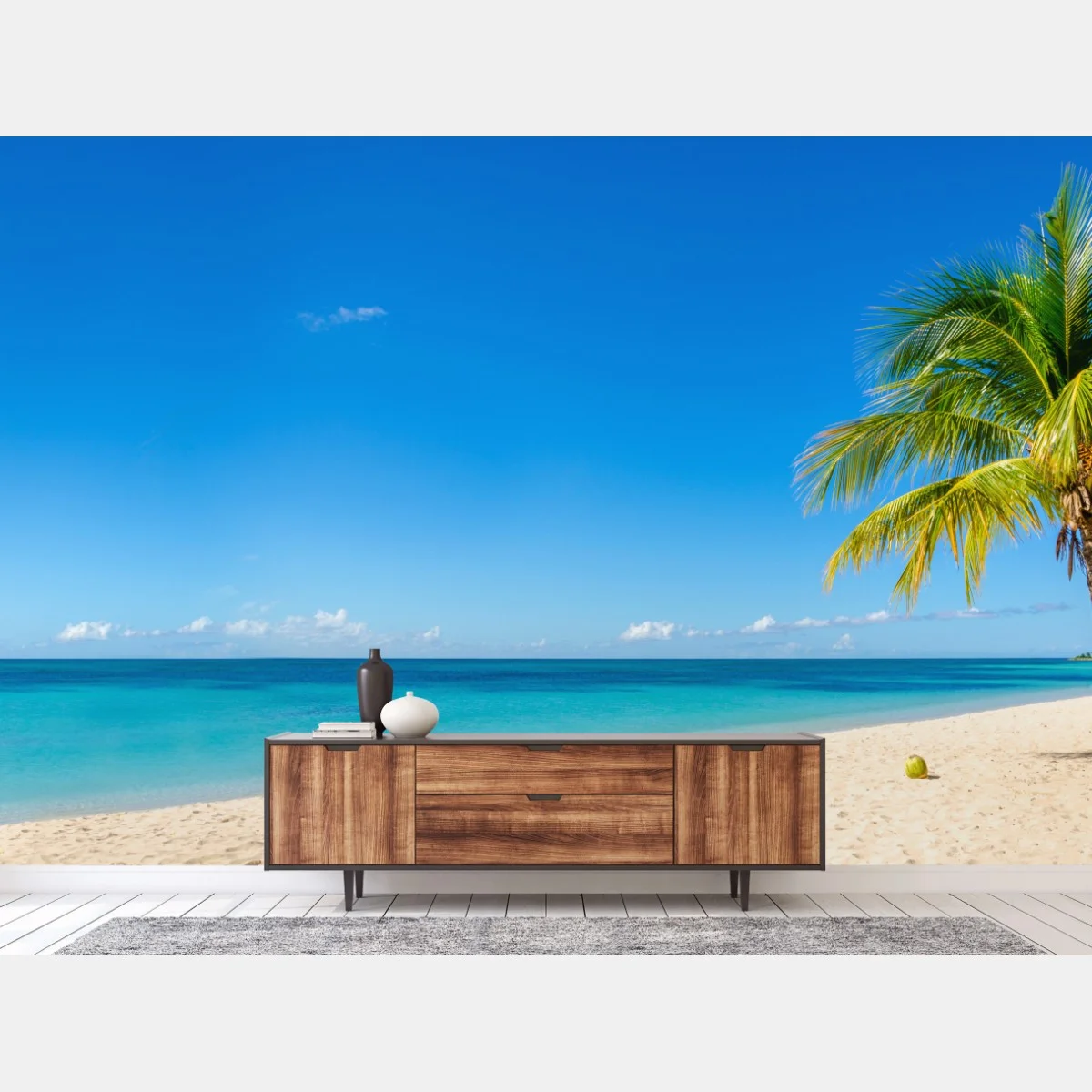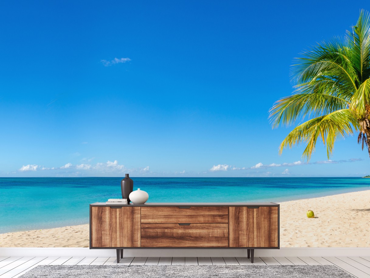 Fototapete Tropischer strand mit türkiswasser und palme