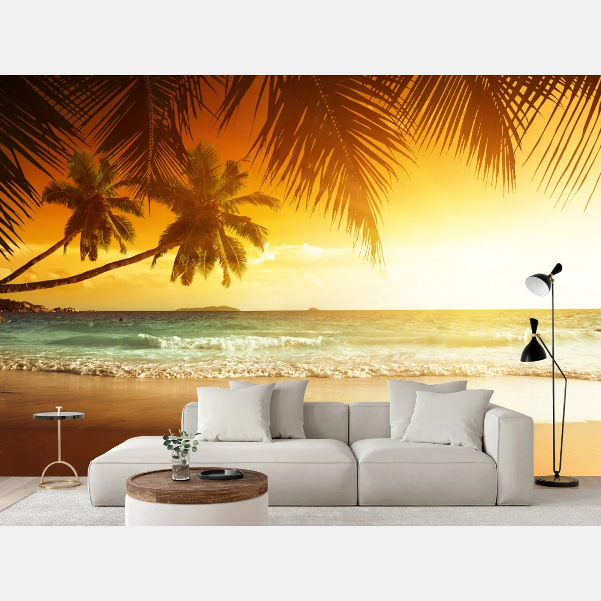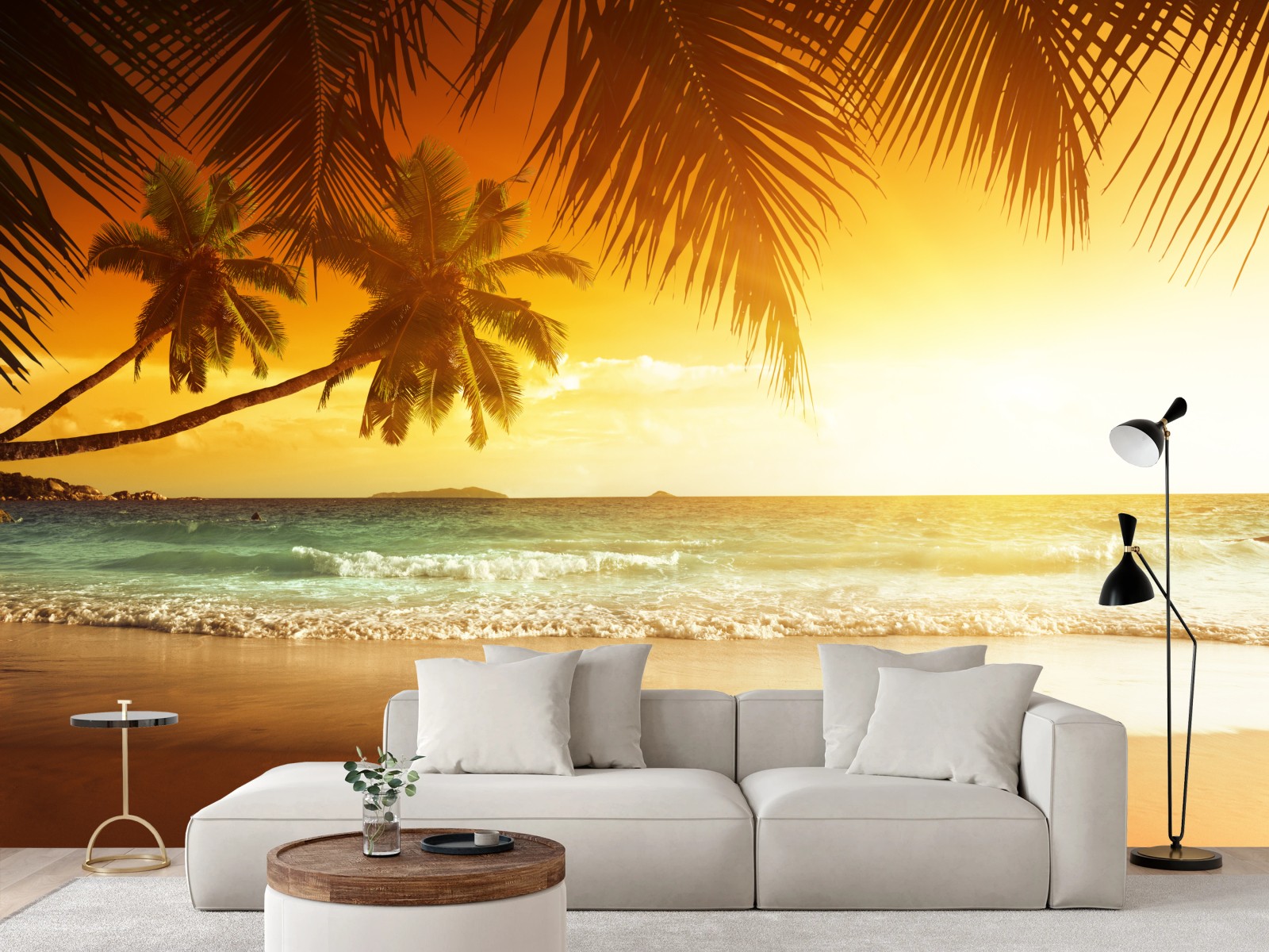 Fototapete Goldener sonnenuntergang an einem strand in der Karibik