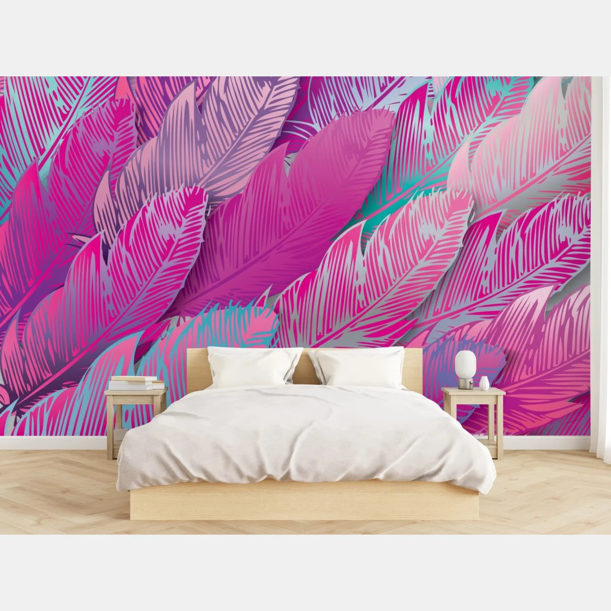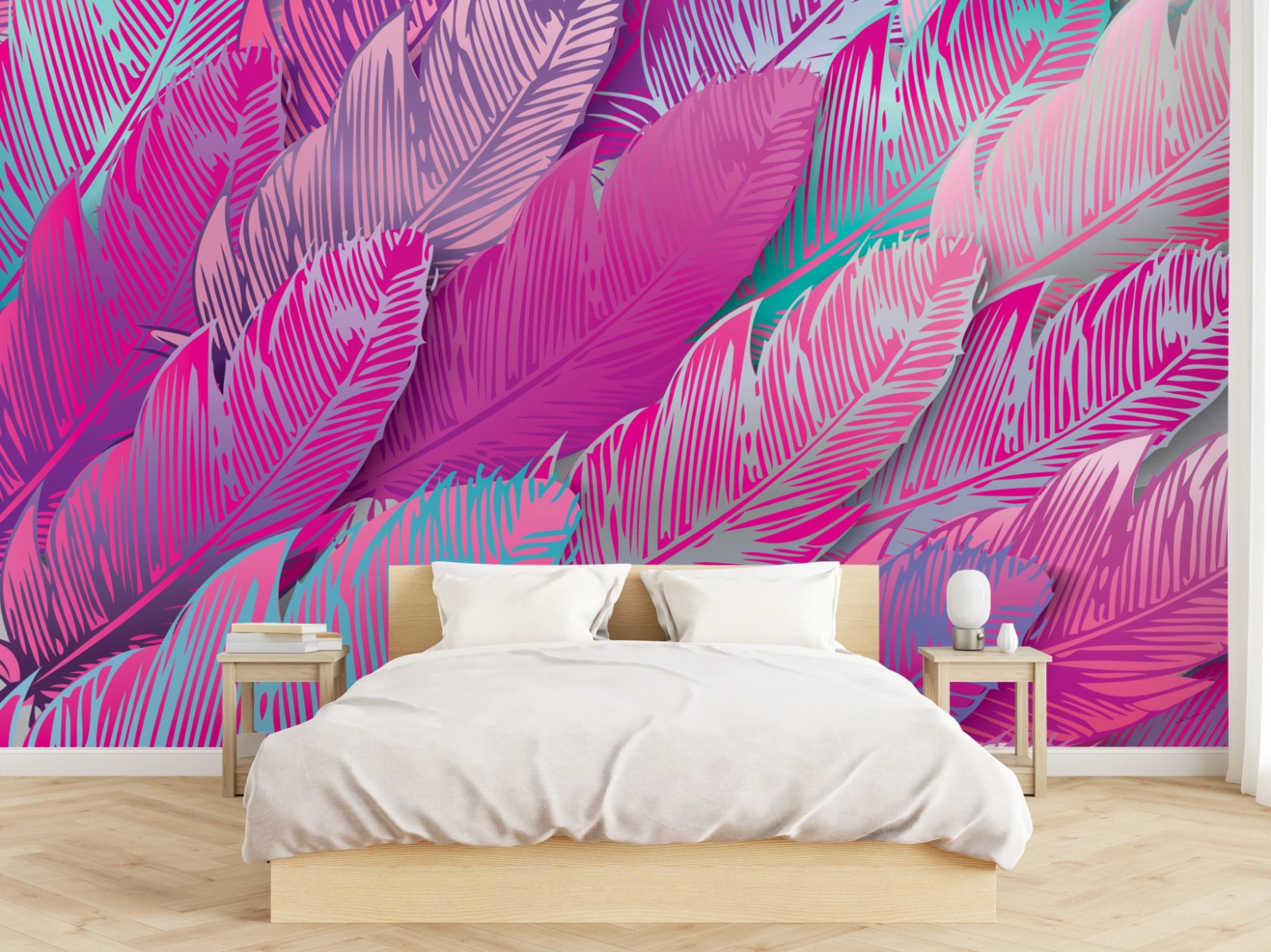Fototapete Irisierendes rosa federmuster