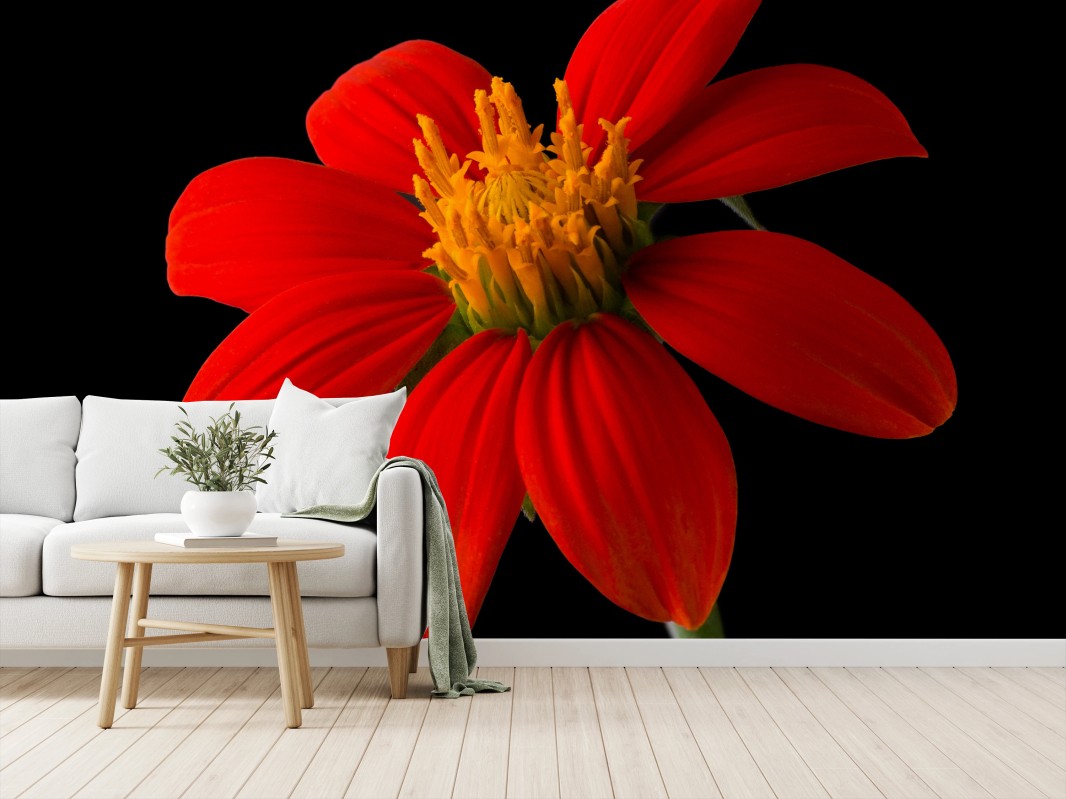 Fototapete Leuchtende mexikanische sonnenblume auf schwarzem hintergrund