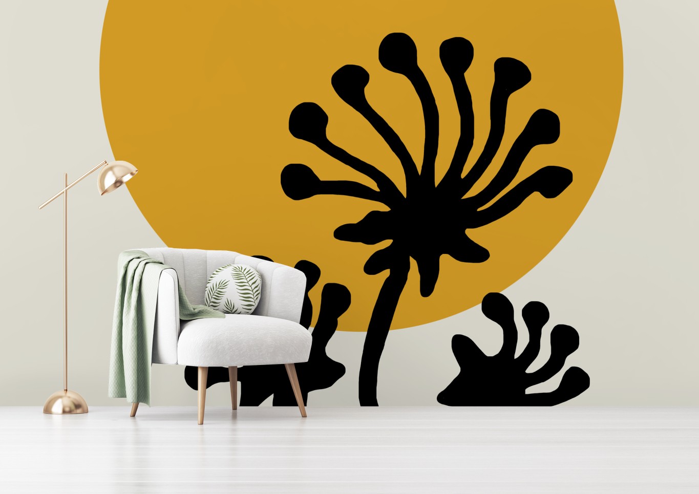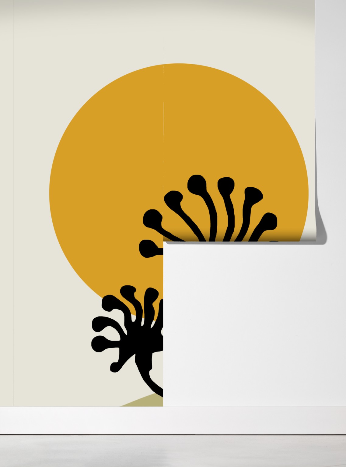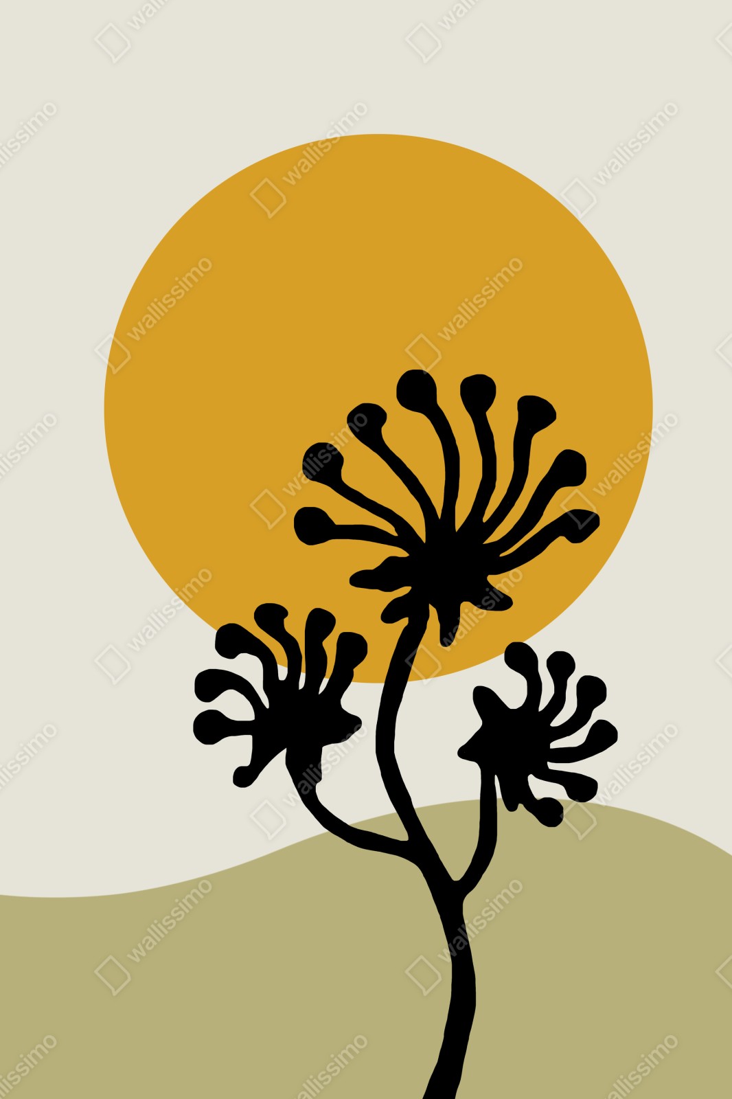 Setzen Sie einen ruhigen Akzent mit dieser minimalistischen botanischen Silhouette in warmen Sonnentönen und neutralen Nuancen, ideal für moderne Räume.