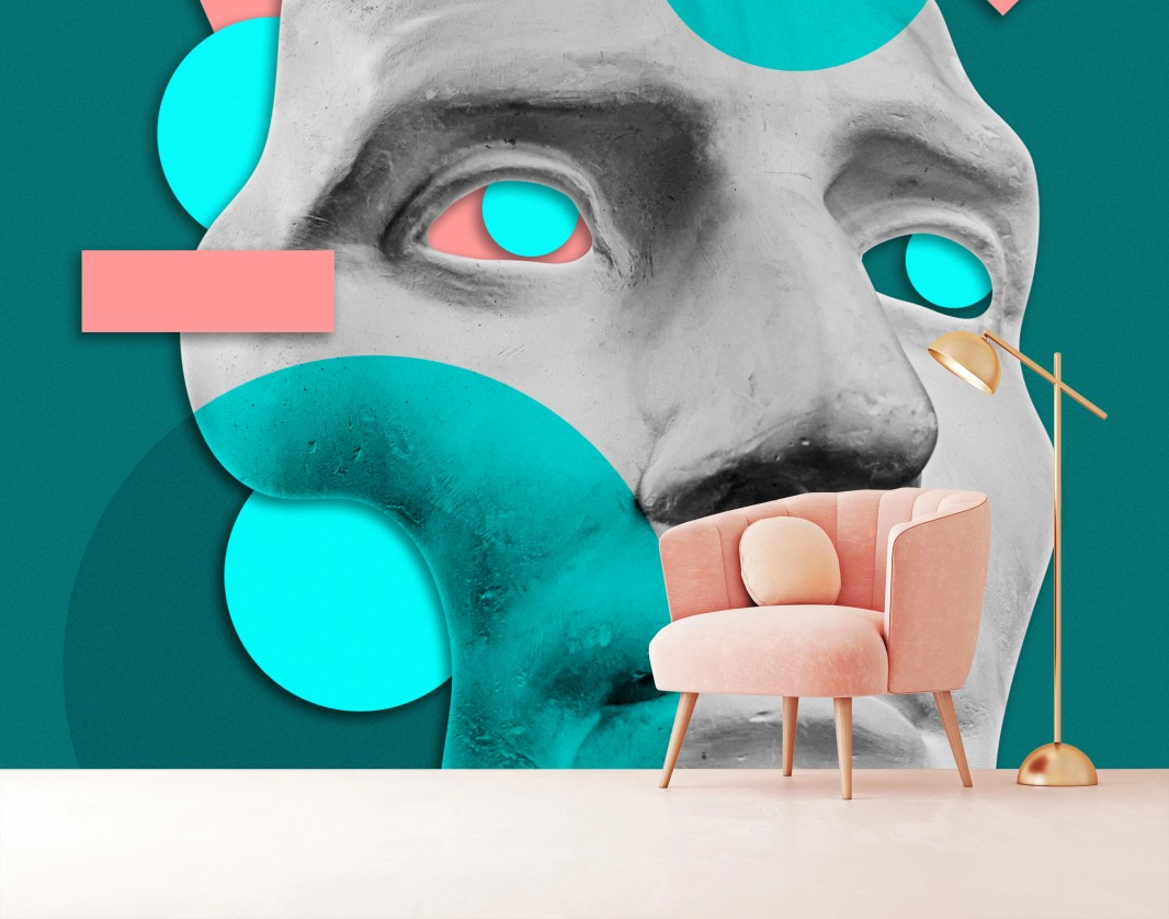 Fototapete Abstrakte klassische maske in türkis und rosa