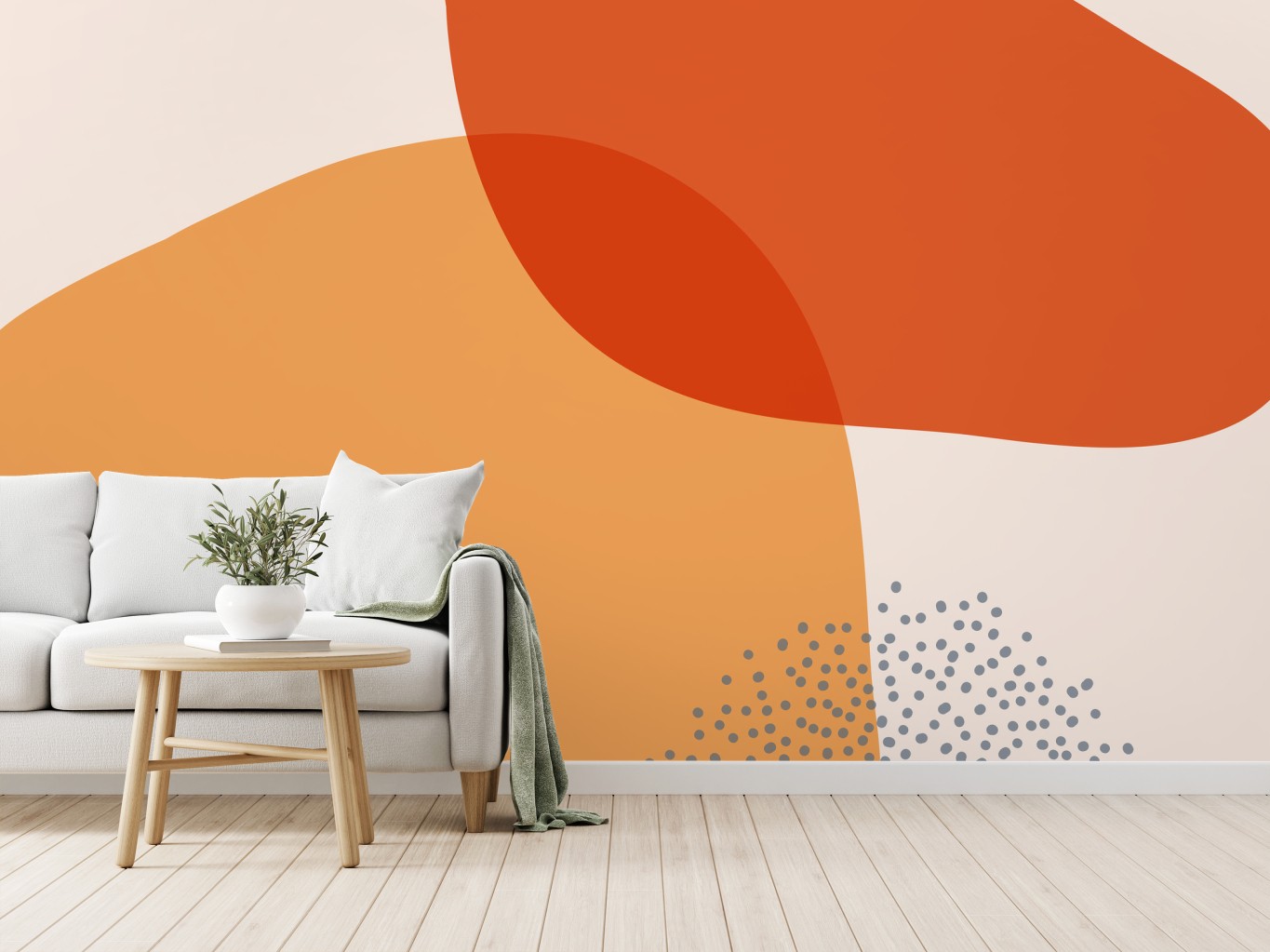 Verleihen Sie Ihrem Raum modernen Minimalismus mit warmen abstrakten Formen und feiner Punktstruktur.