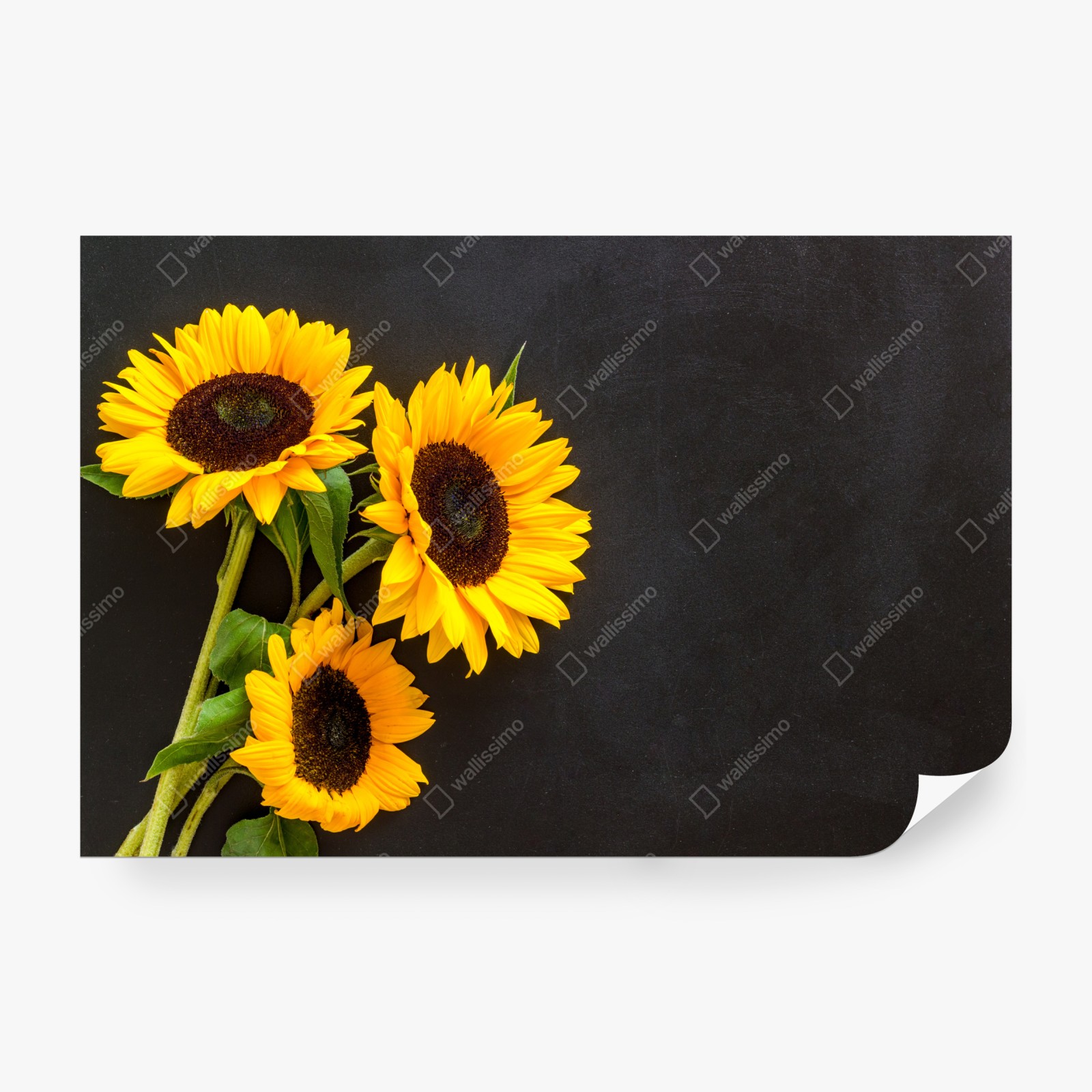 Fototapete sonnenblumenstrauß auf schwarzem hintergrund