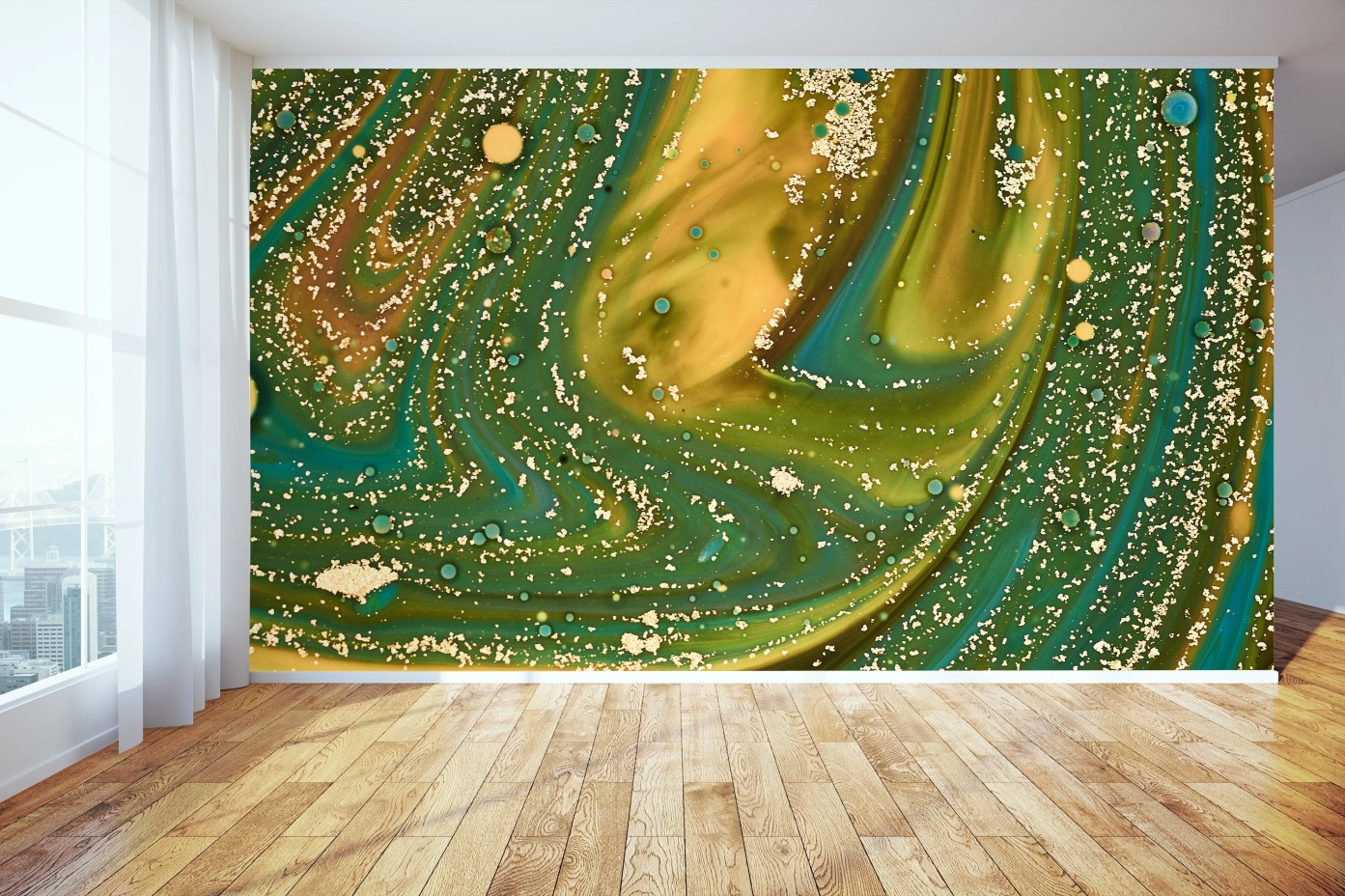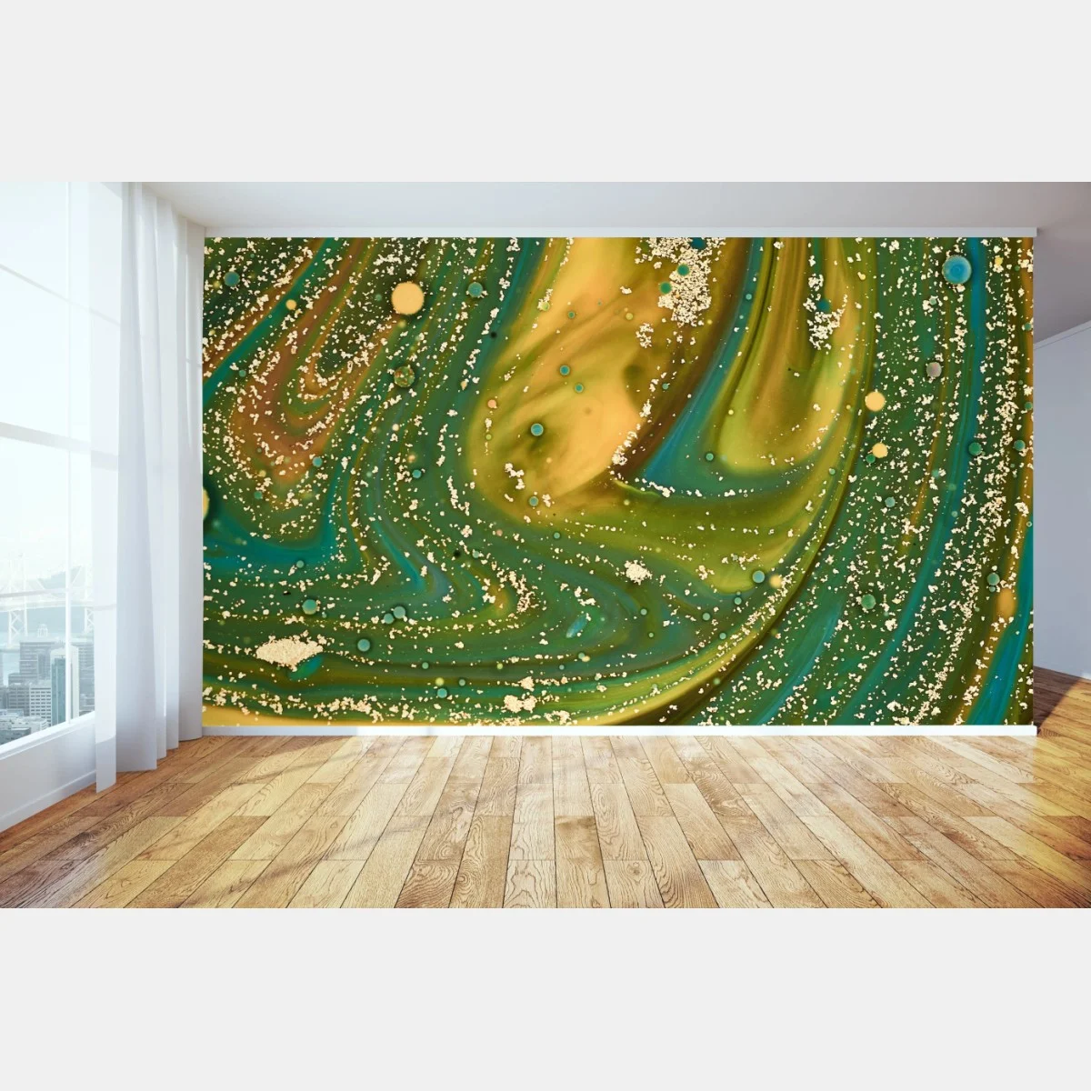 Fototapete Grün-goldene flüssige marmorierte kunst