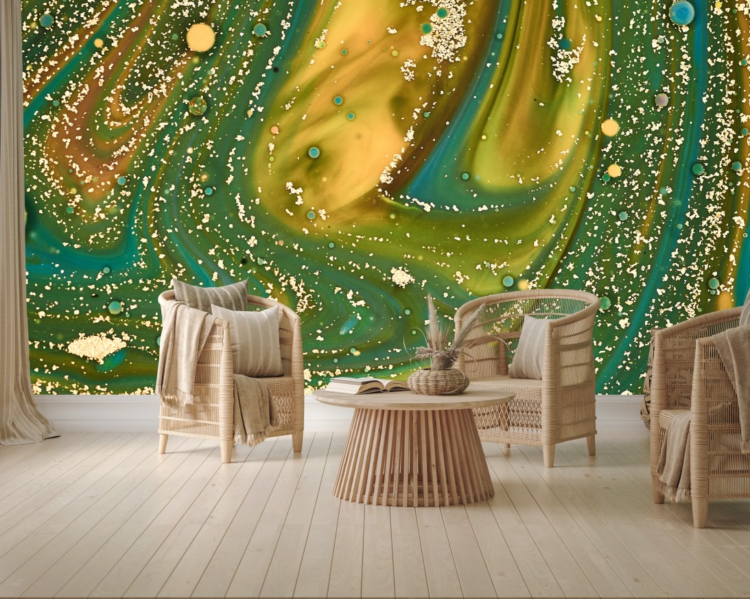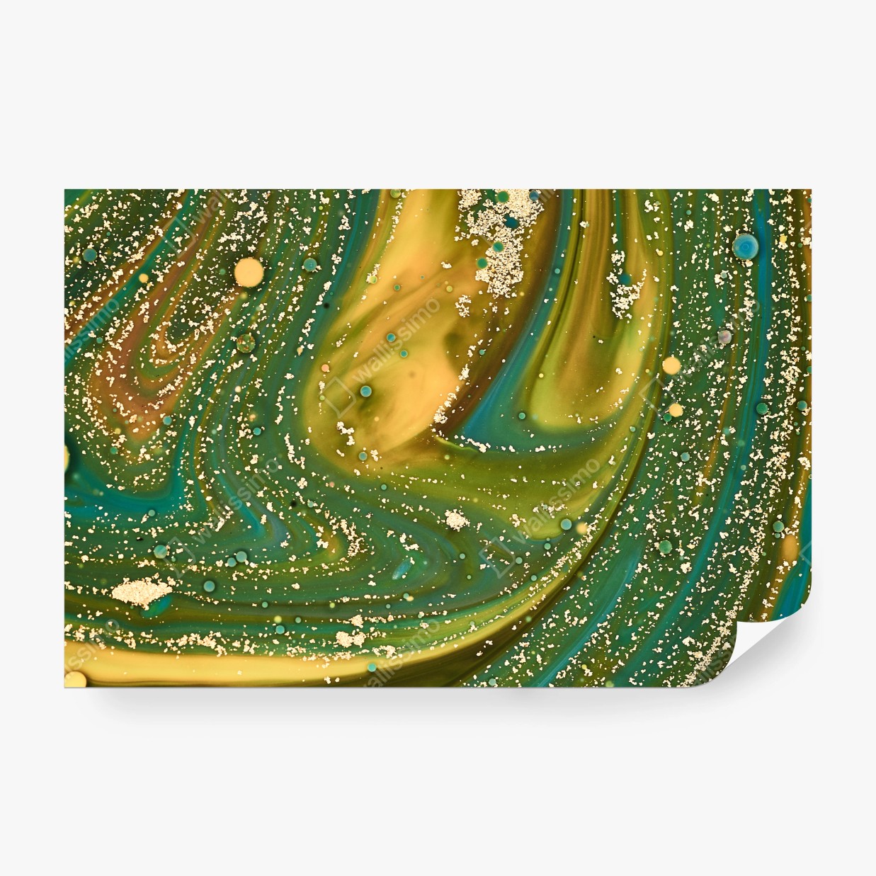 Fototapete Grün-goldene flüssige marmorierte kunst