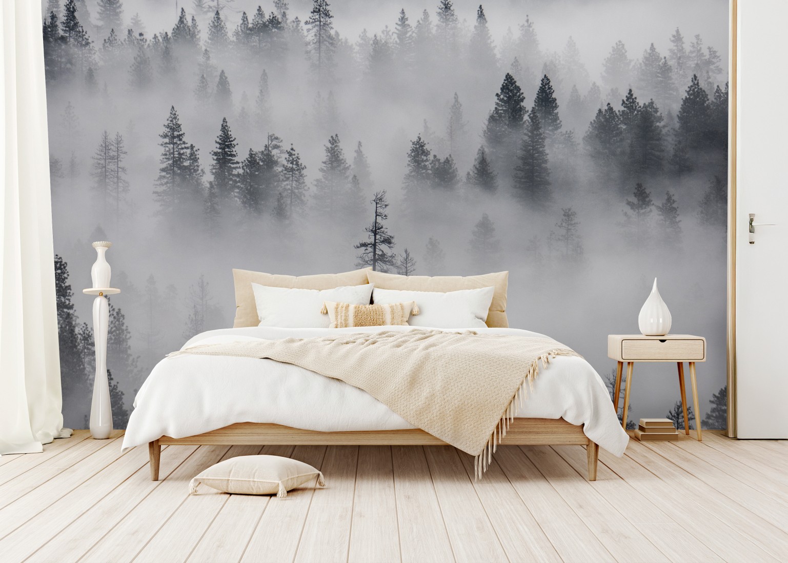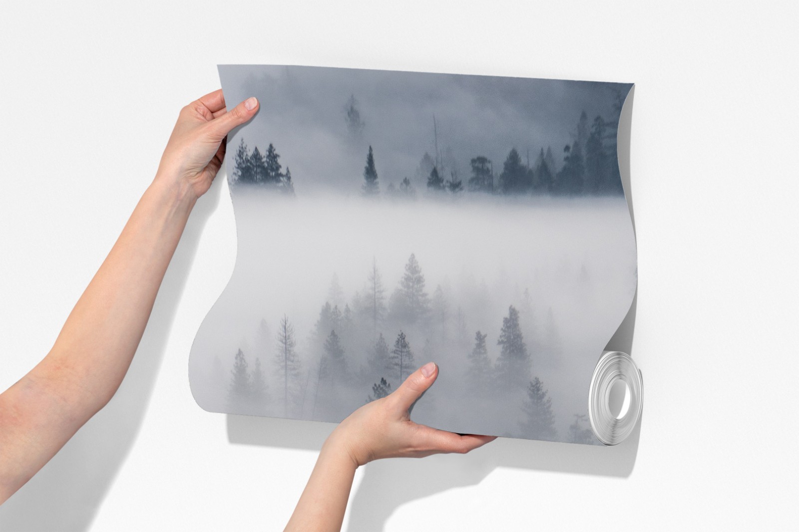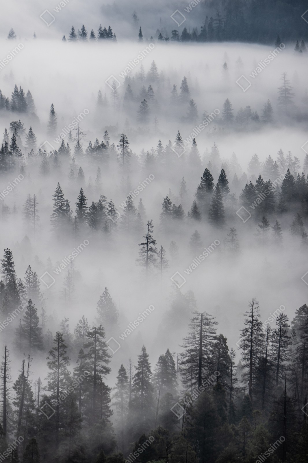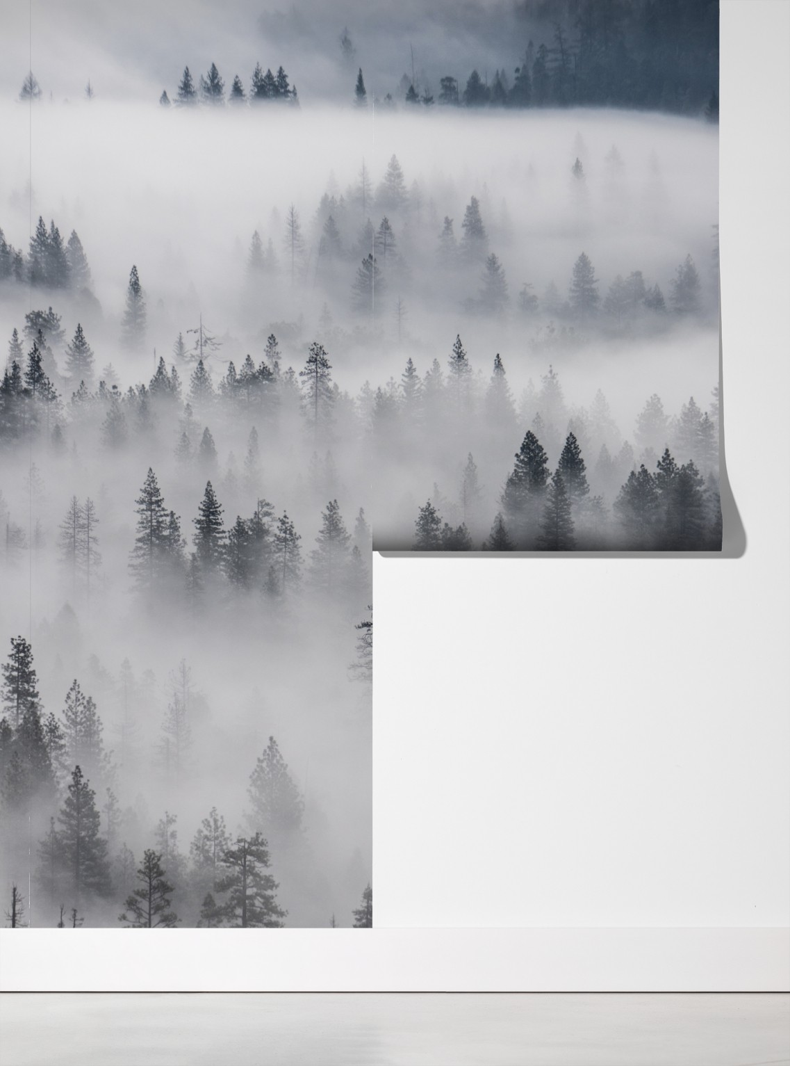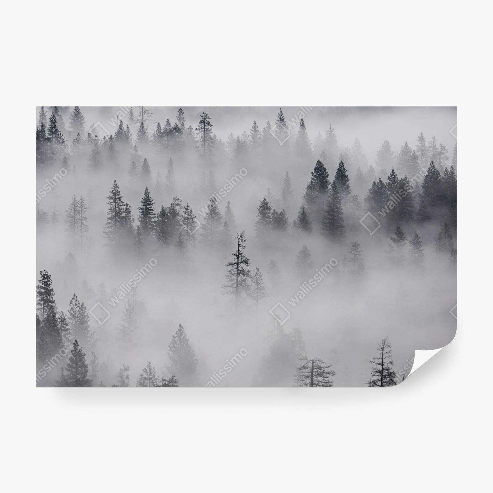 Bringen Sie Ruhe und natürliche Schönheit in Ihren Raum mit diesem Bild eines nebligen Waldes.