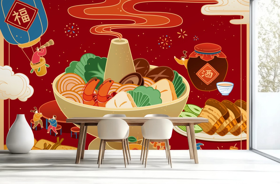 Fototapete Illustration des gemeinsamen essens zum Chinesischen Neujahr