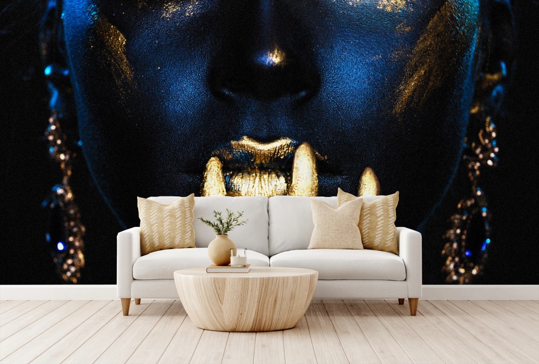Fototapete Mystisches porträt in blau und gold