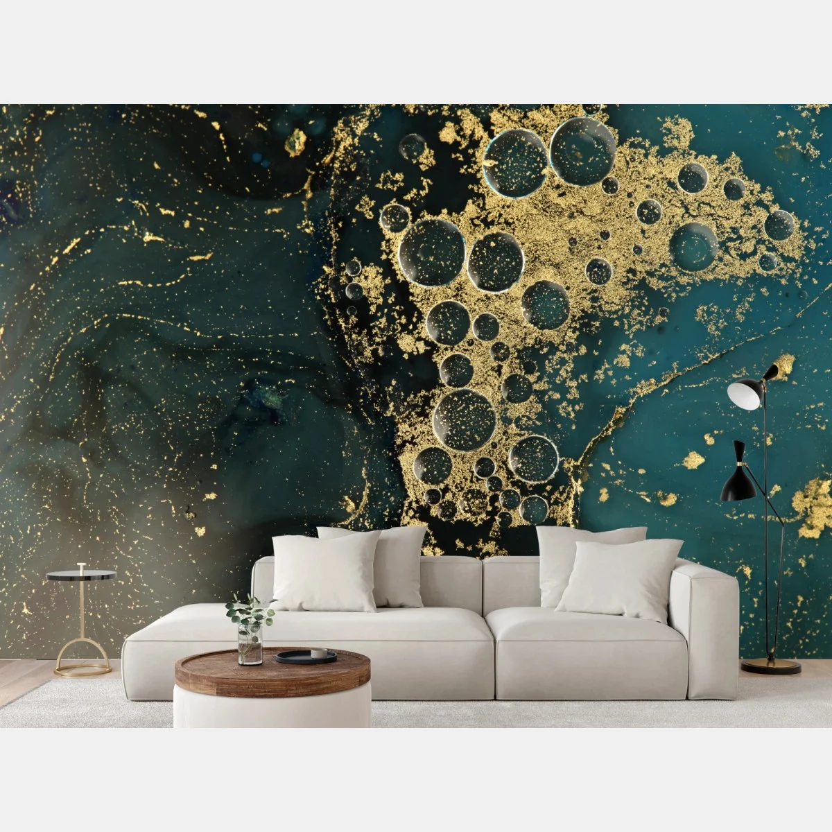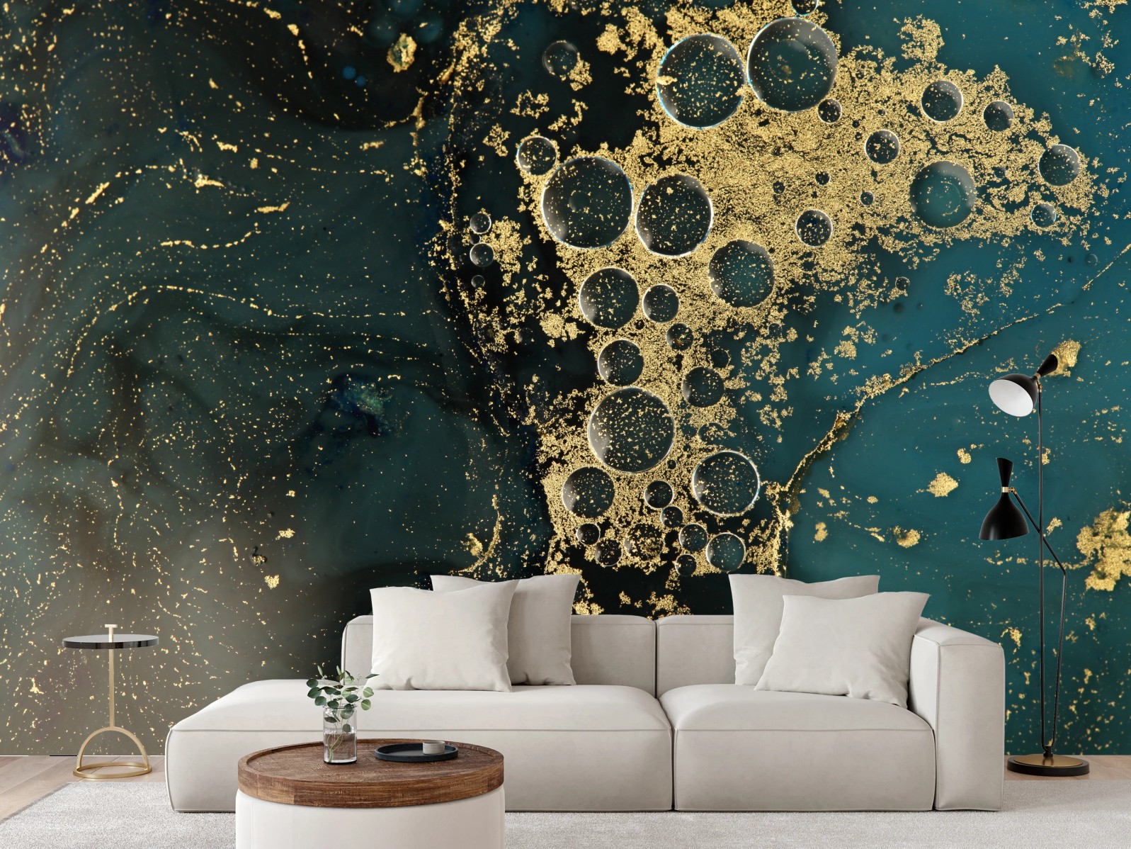 Elegante türkis-gold abstrakte marmorierte textur, die modernen räumen luxus und tiefenwirkung verleiht.MehrWeniger