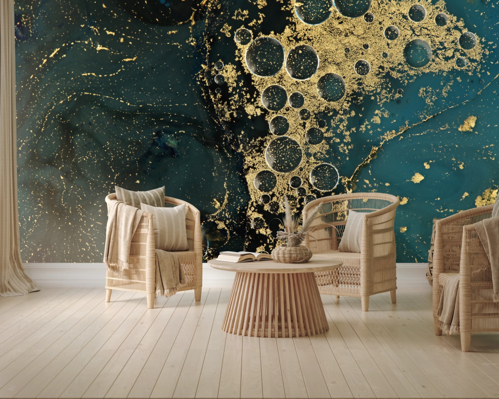 Fototapete Türkis-gold abstrakte marmorierte textur