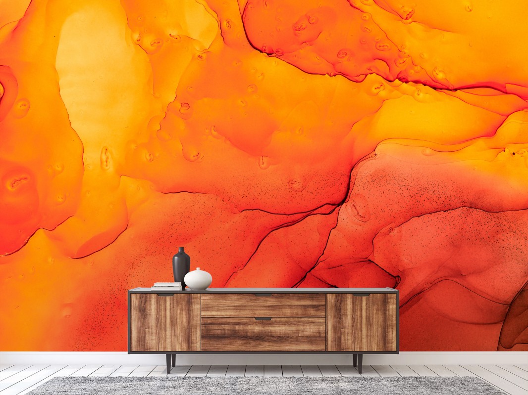 Fototapete Lebendige orange abstrakte alkoholkunst