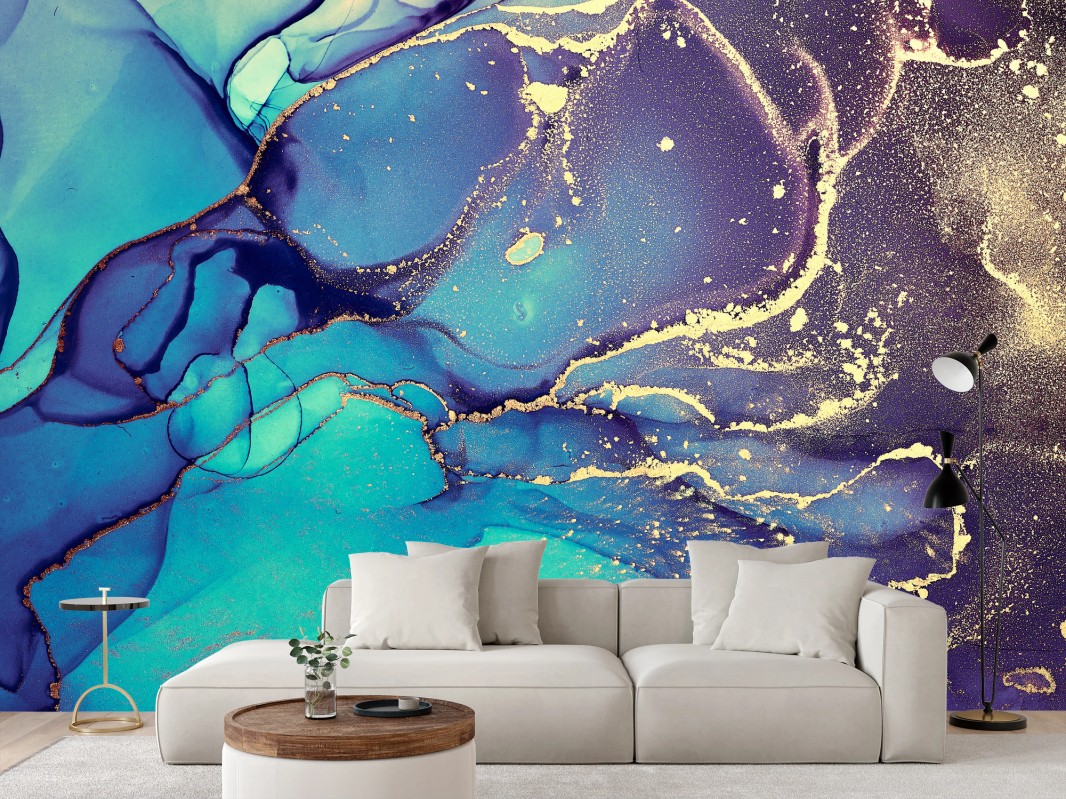 Fototapete Türkis und gold fließende marmorabstraktion