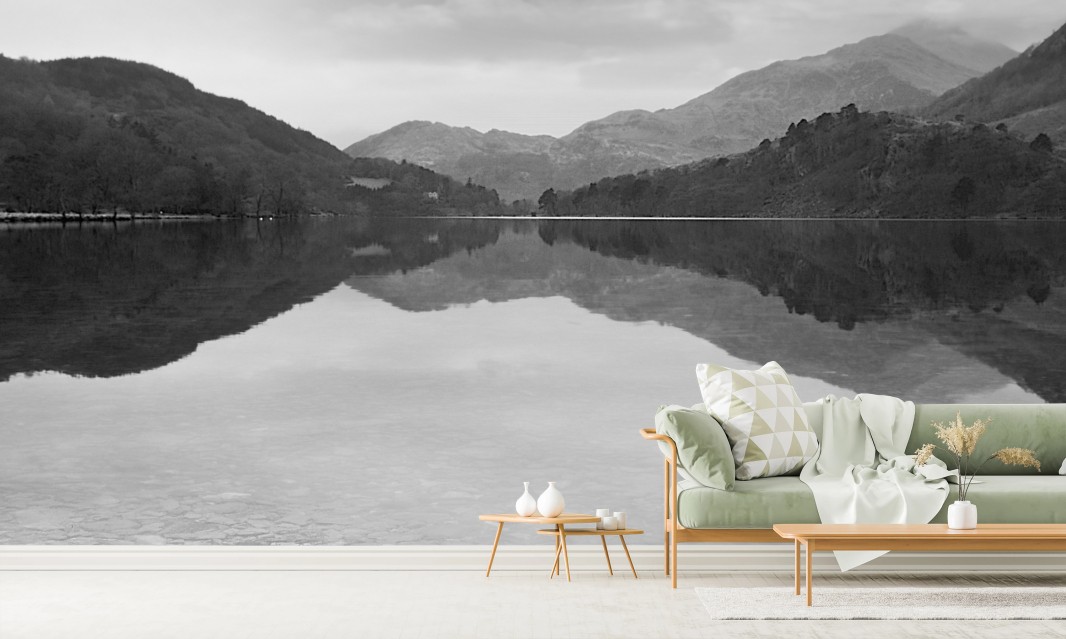 Fototapete Ruhiger bergsee mit spiegelung