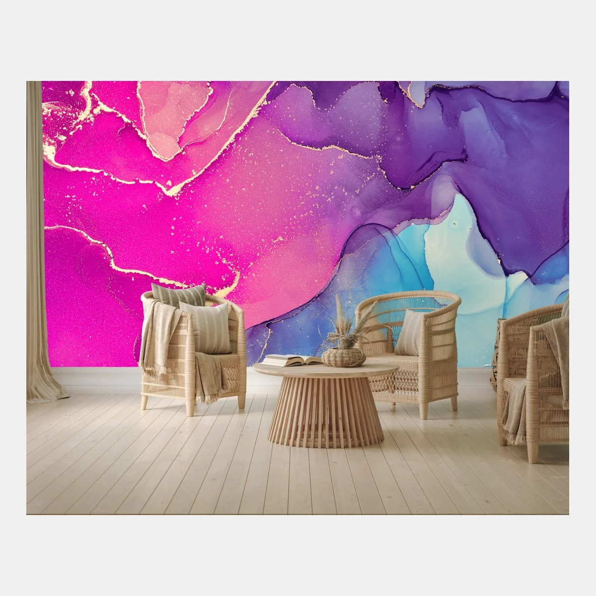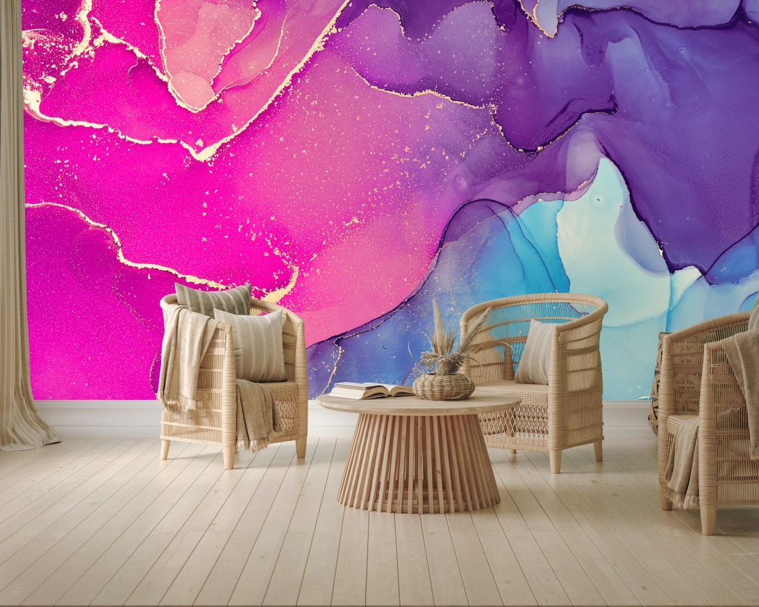Fototapete Leuchtende marmorierte komposition aus alkohol-tinte