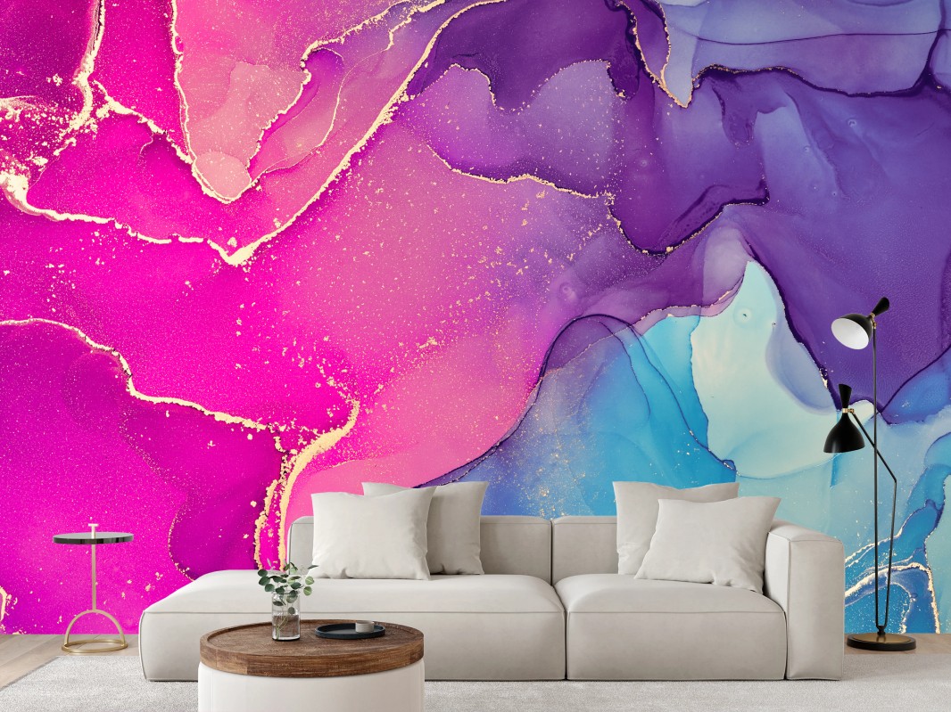 Fototapete Leuchtende marmorierte komposition aus alkohol-tinte