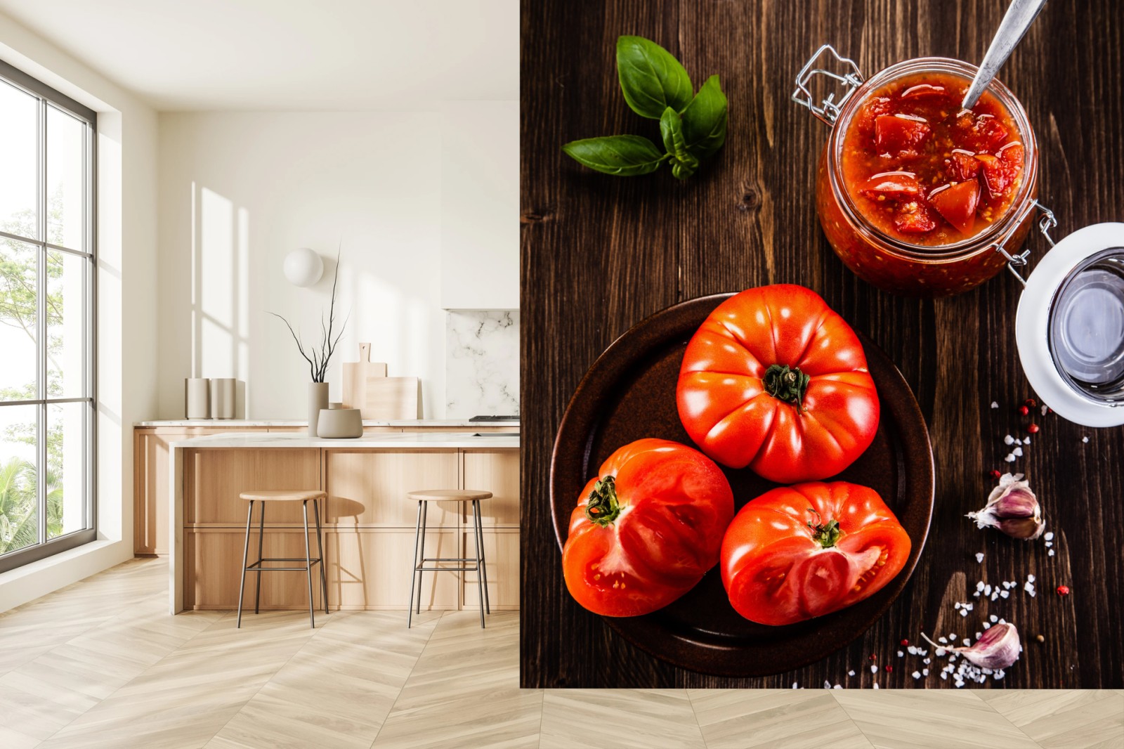 Fototapete Frische tomaten und hausgemachte tomatensauce