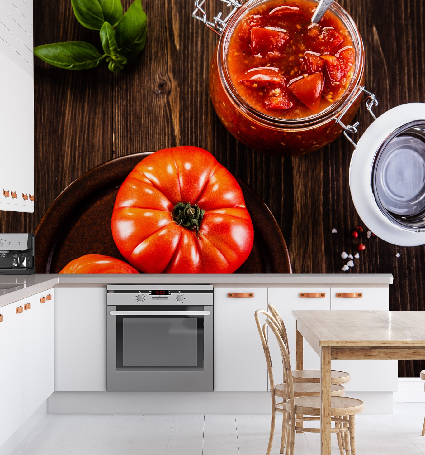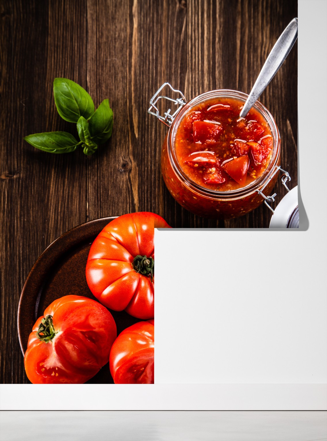 Fototapete frische tomaten und hausgemachte tomatensauce