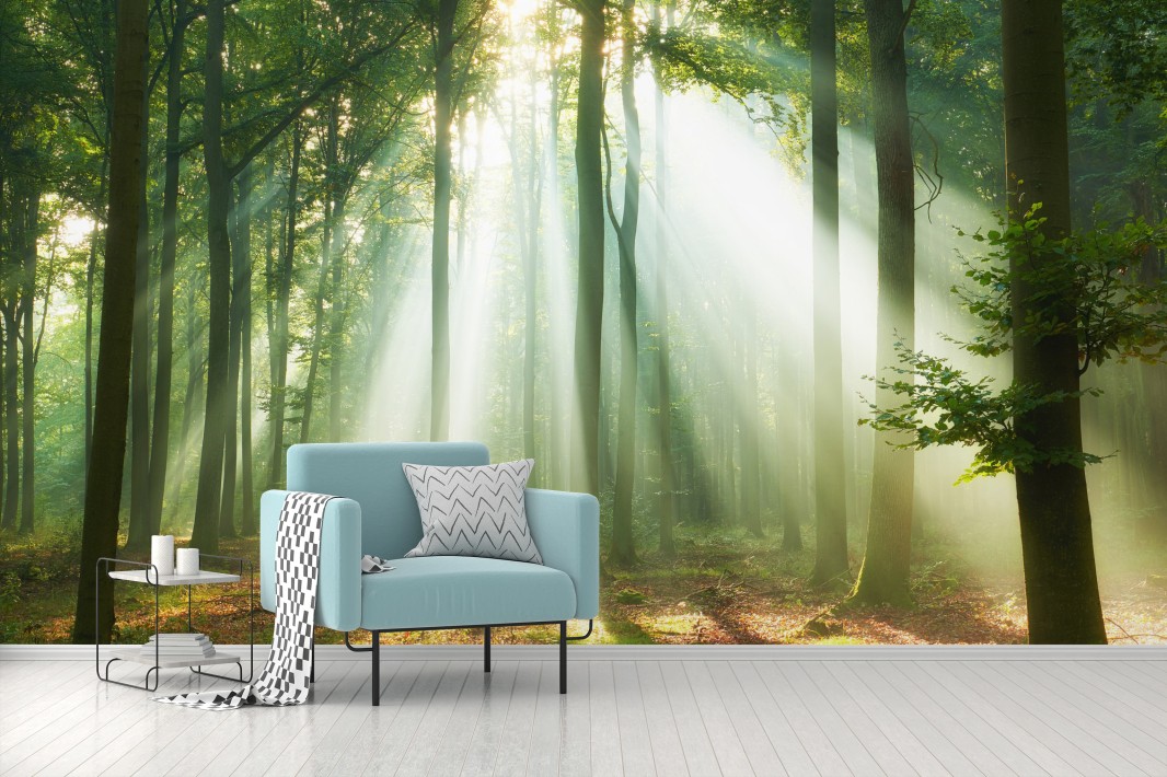 Fototapete Morgendliches licht im wald