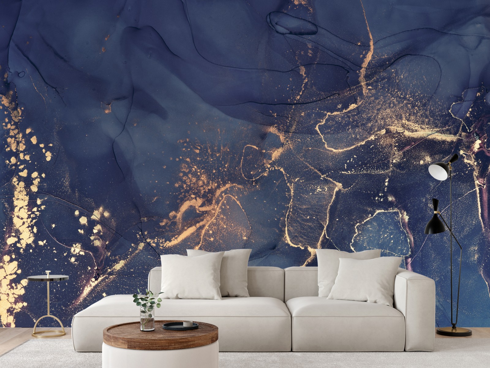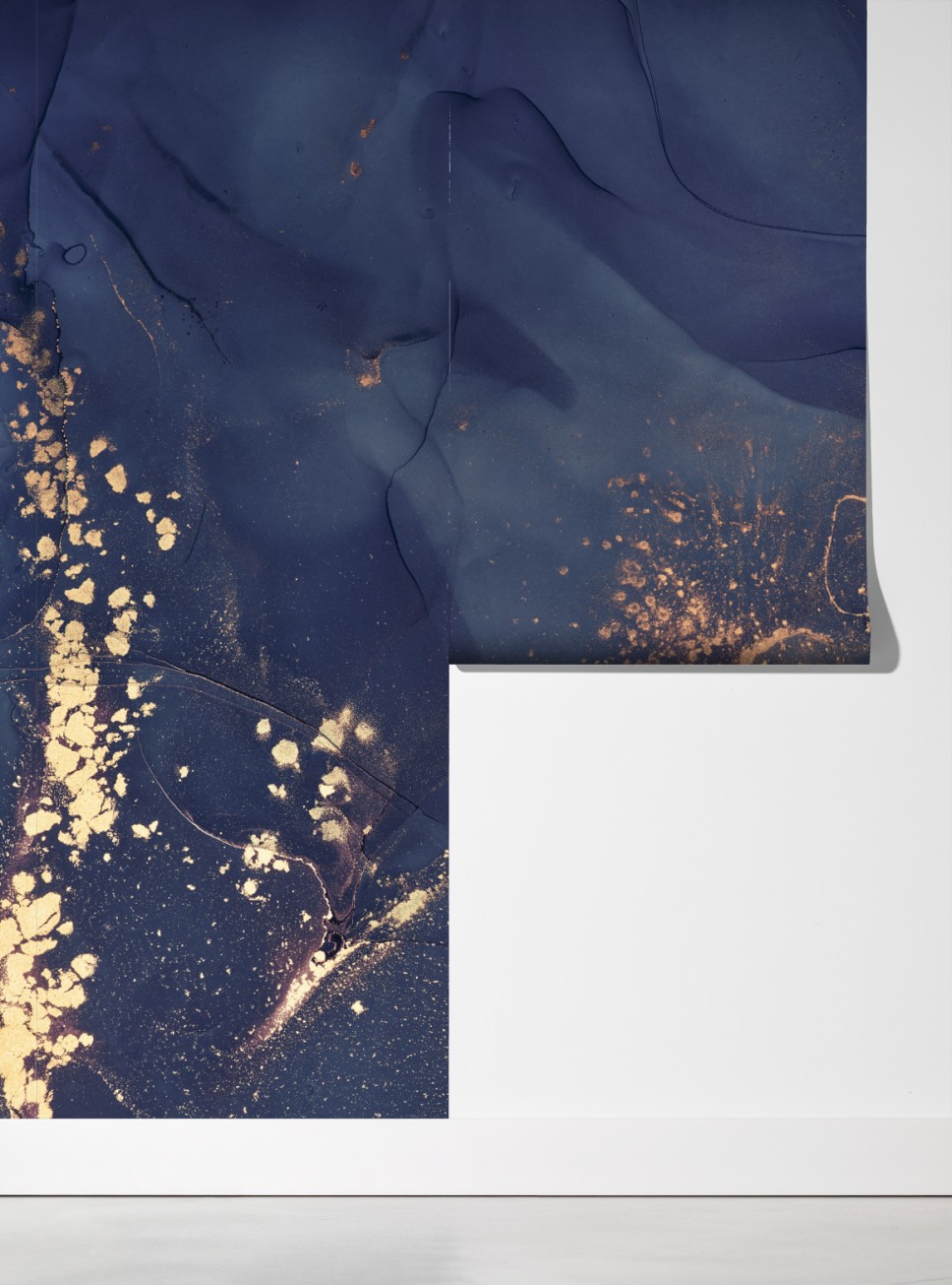 Atemberaubende dunkelblaue und goldene marmor-abstraktion, die jedem Raum luxuriöse Tiefe und moderne Eleganz verleiht.