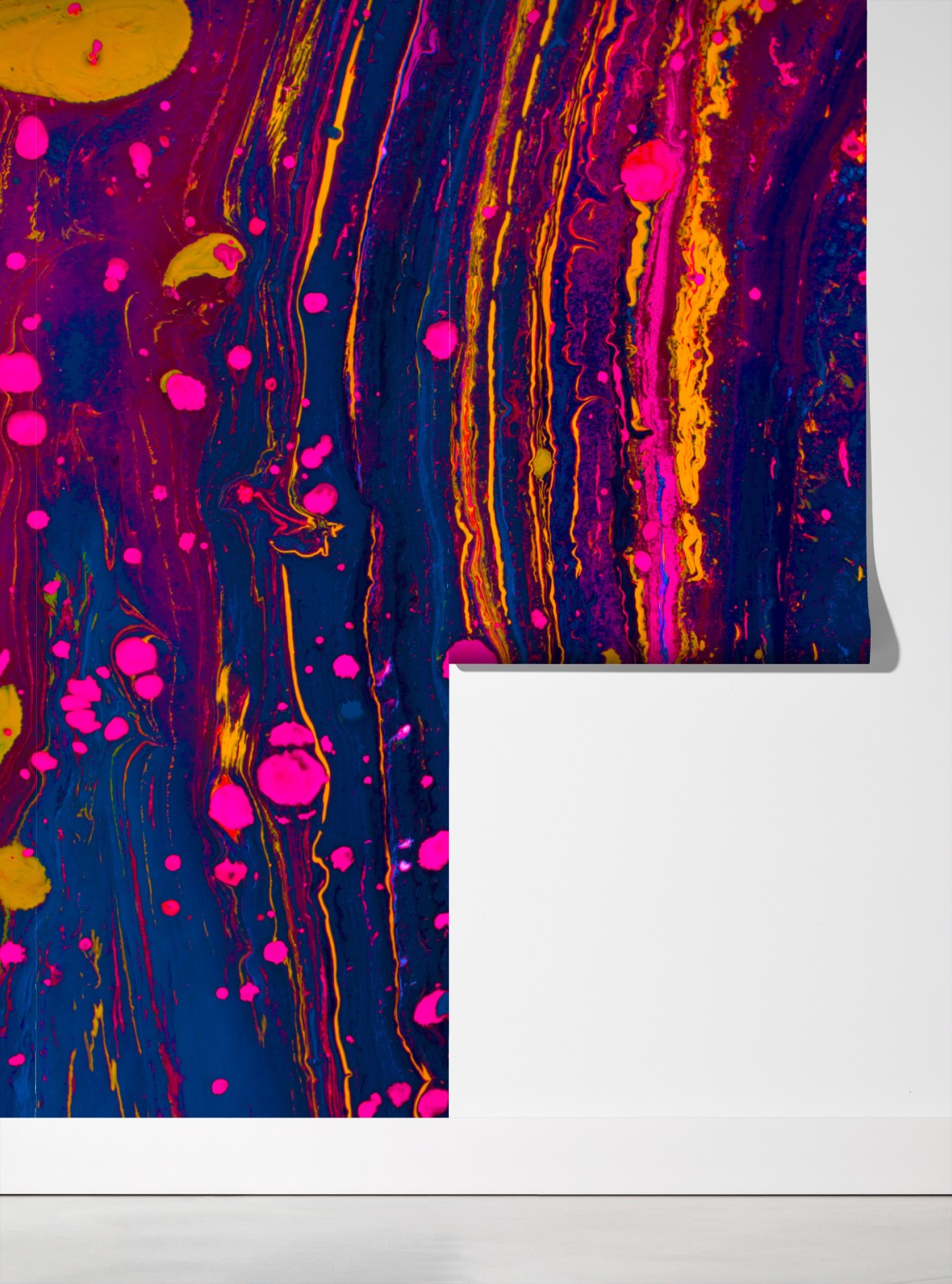 Verwandeln Sie jeden Raum mit dieser neon marmorierten abstrakten Grafik, die lebendige Farben und dynamische Textur bietet.