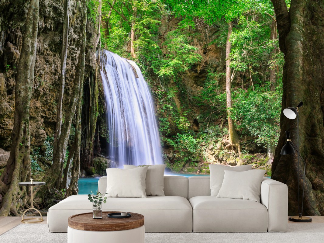 Fototapete Ruhiger wasserfall im Erawan Nationalpark
