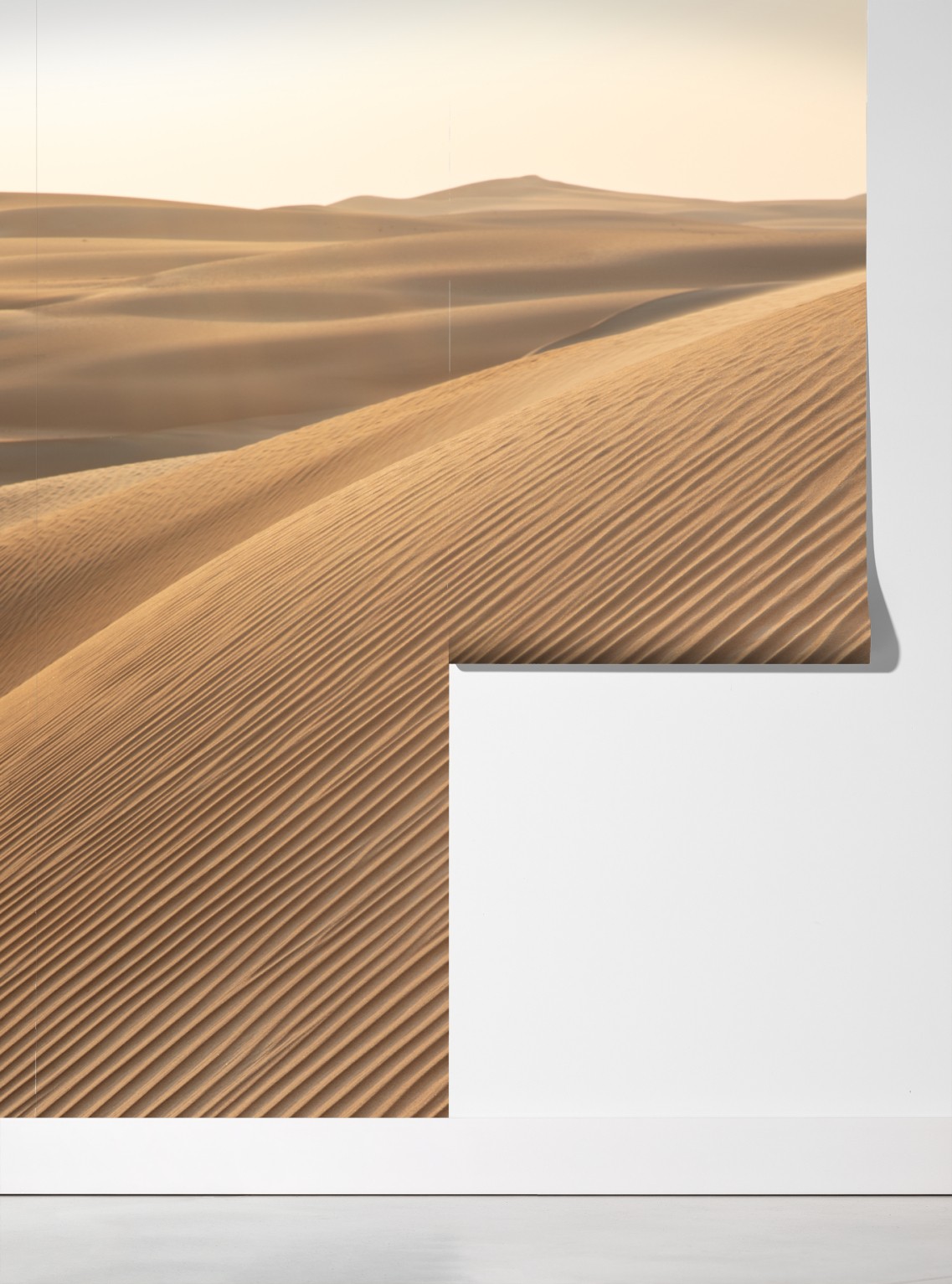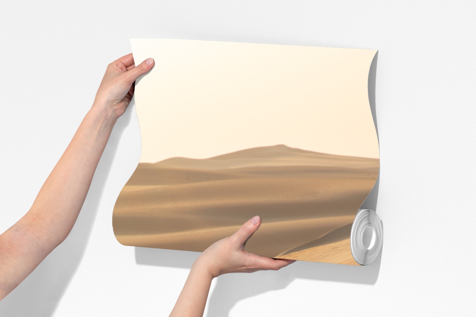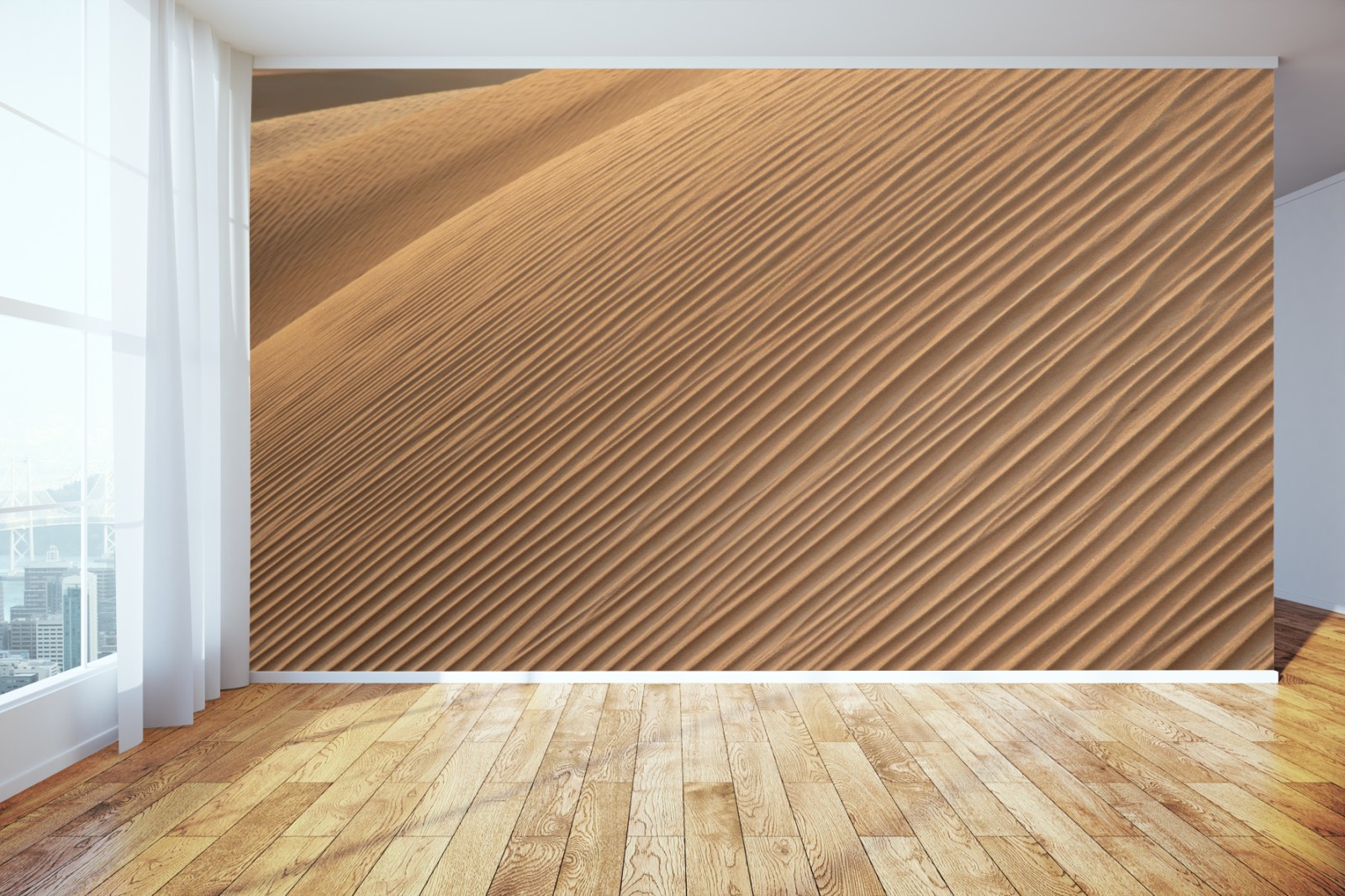 Bringen Sie Ruhe und natürliche Wärme in Ihr Zuhause mit einem minimalistischen Foto goldener Sanddünen.