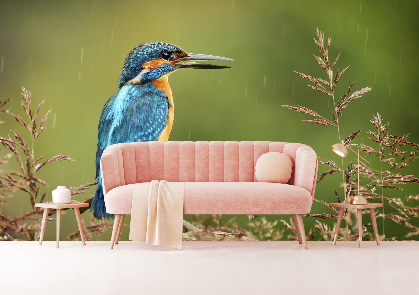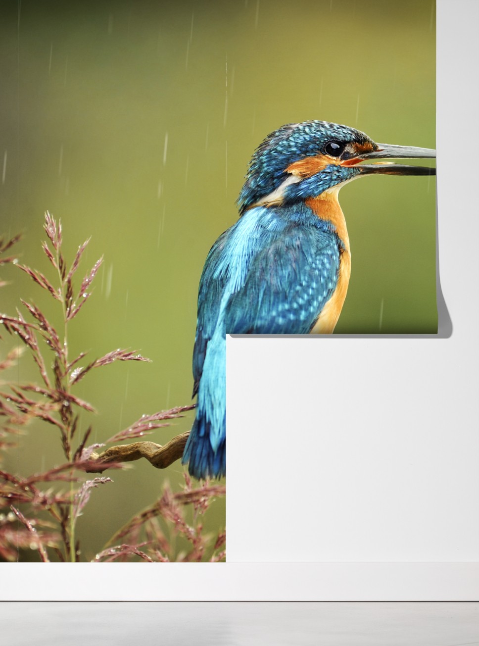 Fototapete lebhafter eisvogel im regen – Wallnifity®