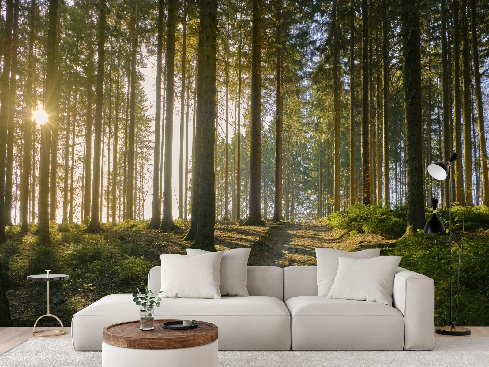 Fototapete Sonniger waldweg im morgenlicht