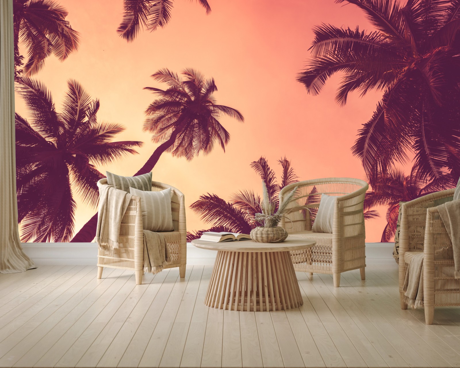 Fototapete Tropische palmen bei sonnenuntergang