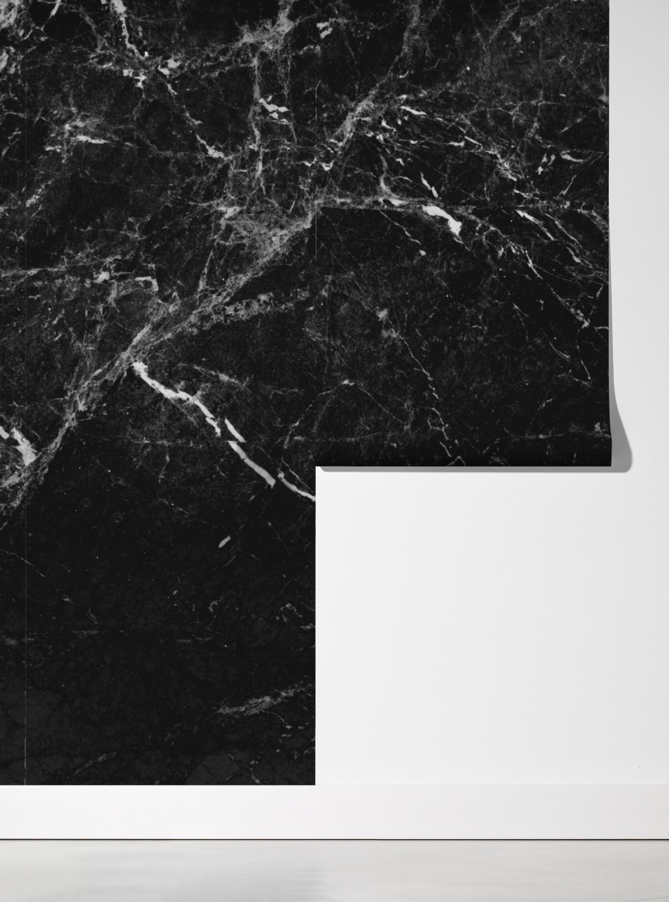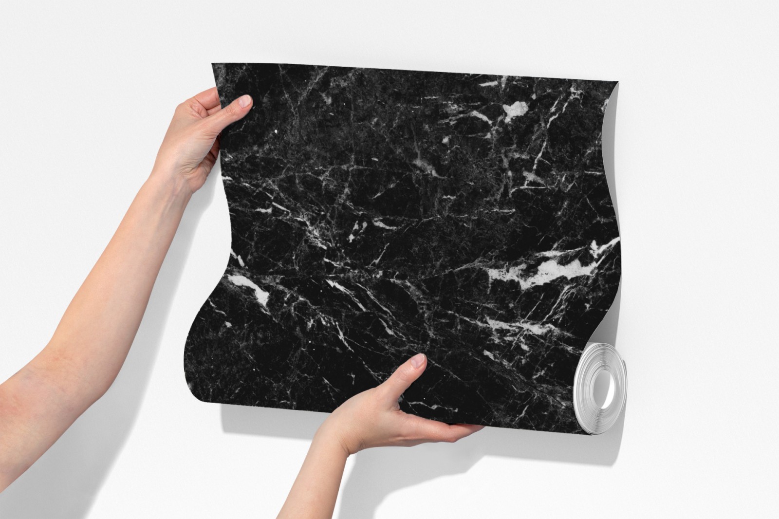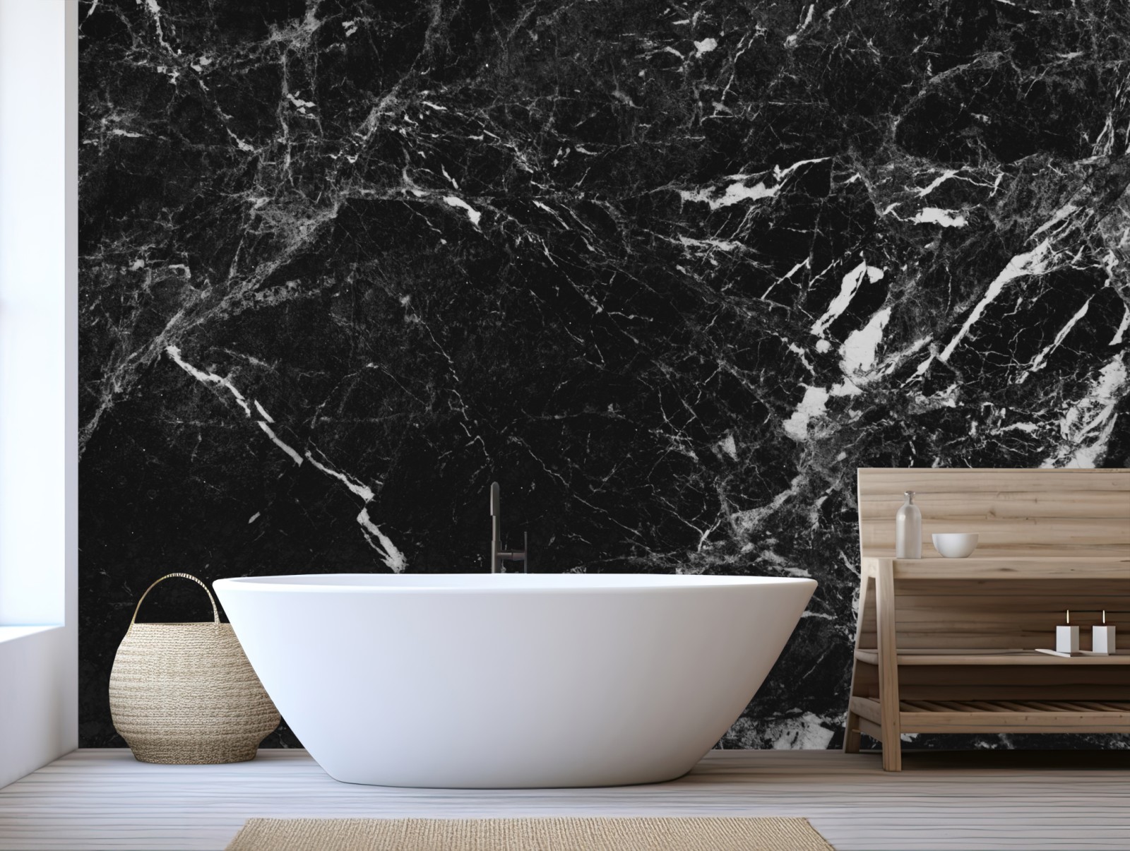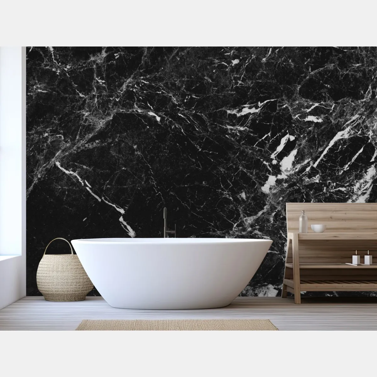 eleganter schwarzer marmor mit markanten weißen adern verleiht dem raum zeitlose eleganz und passt zu modernen und minimalistischen einrichtungsstilen.