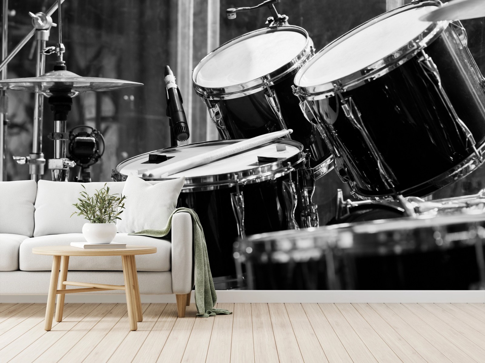Fototapete Schwarzweißes schlagzeug nahaufnahme