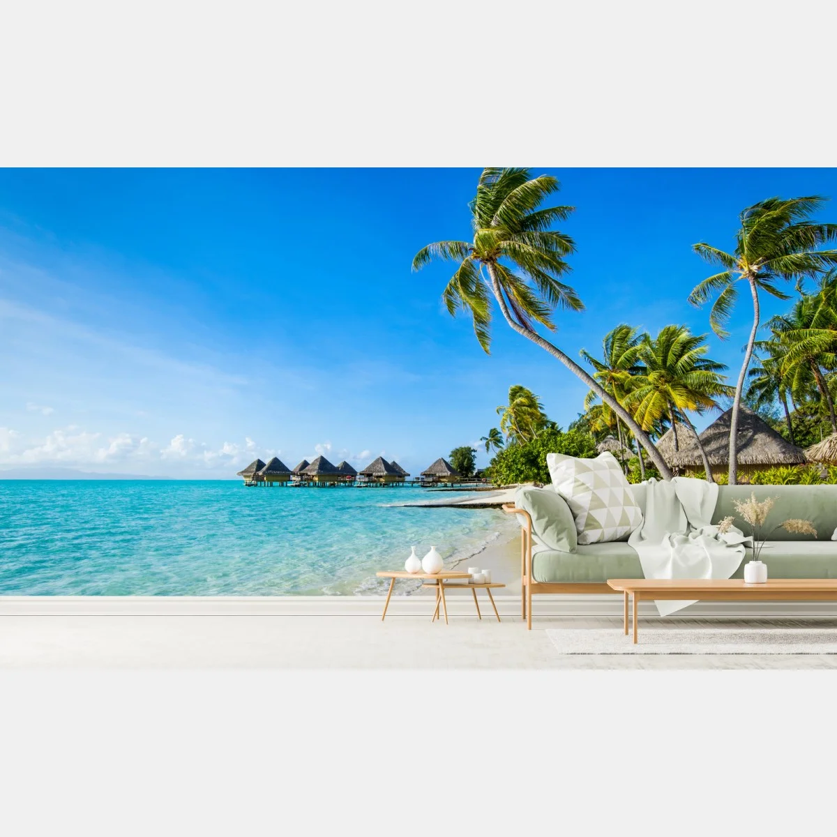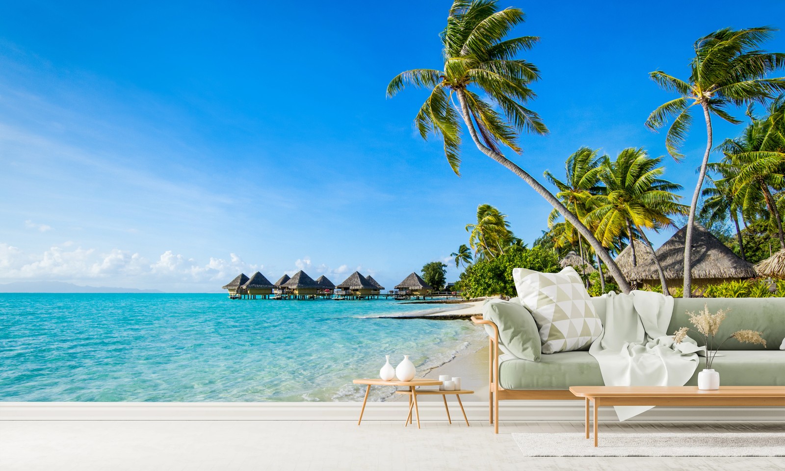 Fototapete Tropischer türkisfarbener strand mit palmen
