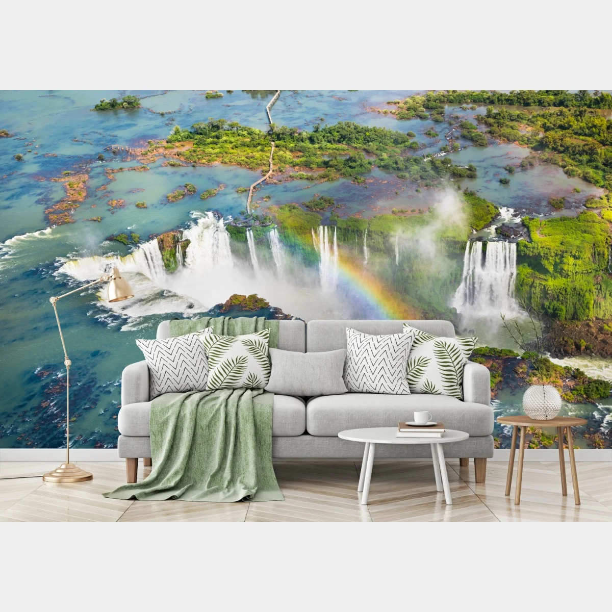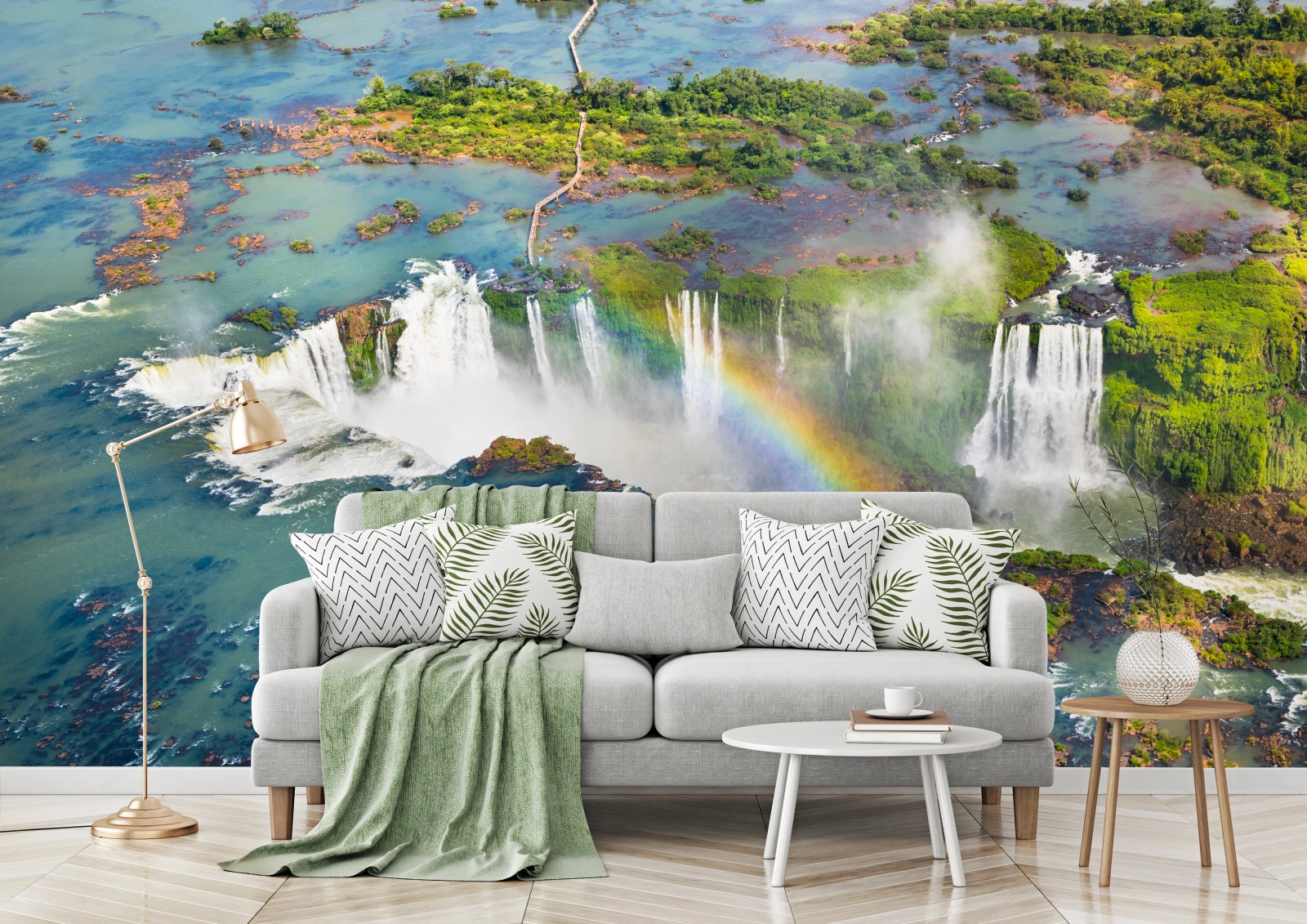Fototapete Luftaufnahme tropischer wasserfälle mit regenbogen
