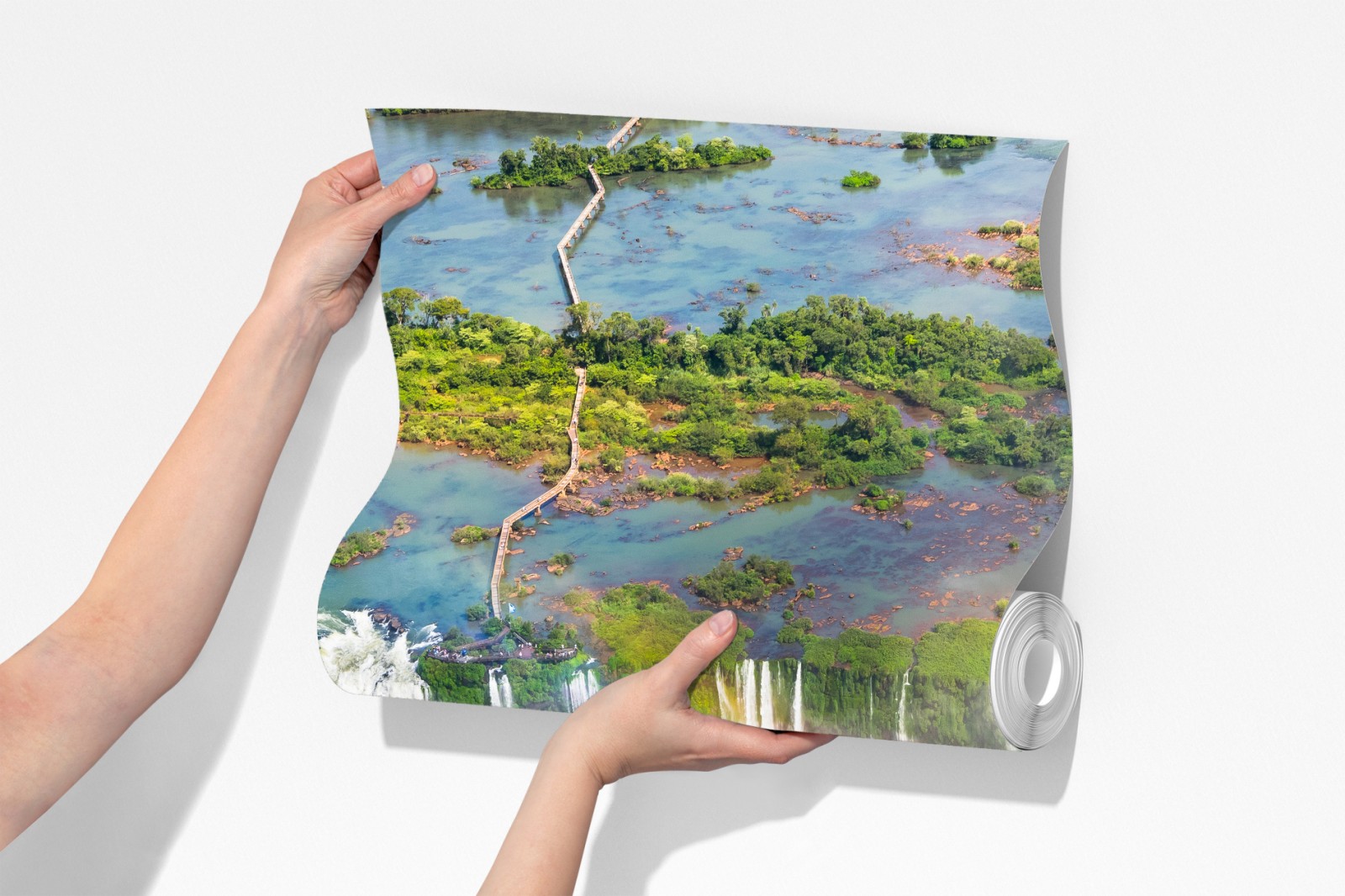 Fototapete luftaufnahme tropischer wasserfälle mit regenbogen