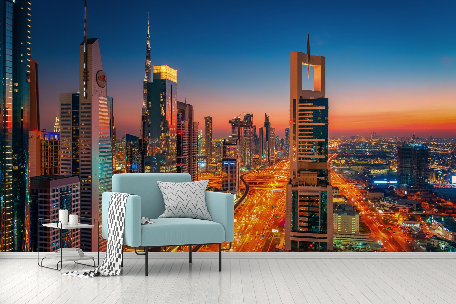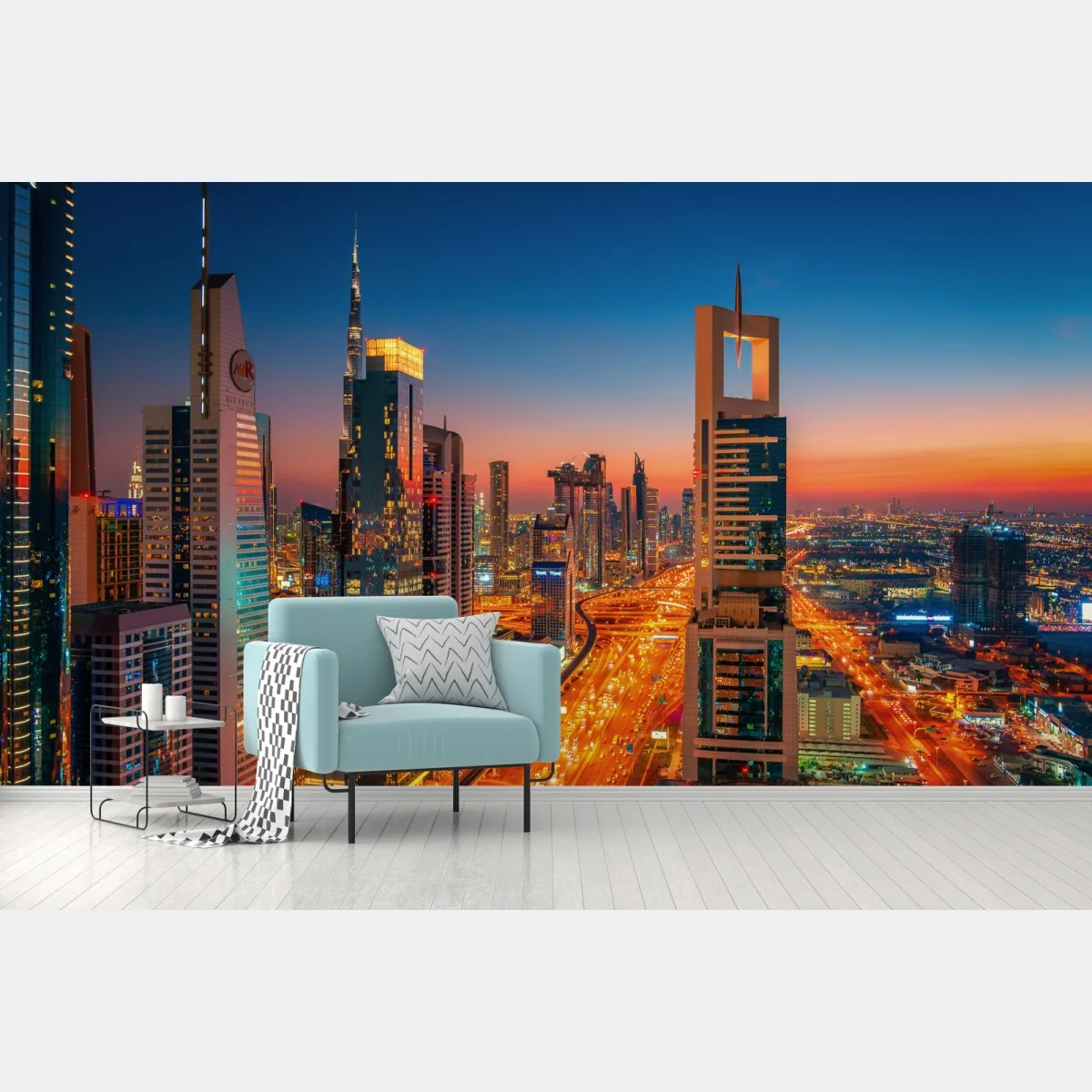 Fototapete Dubai skyline bei dämmerung