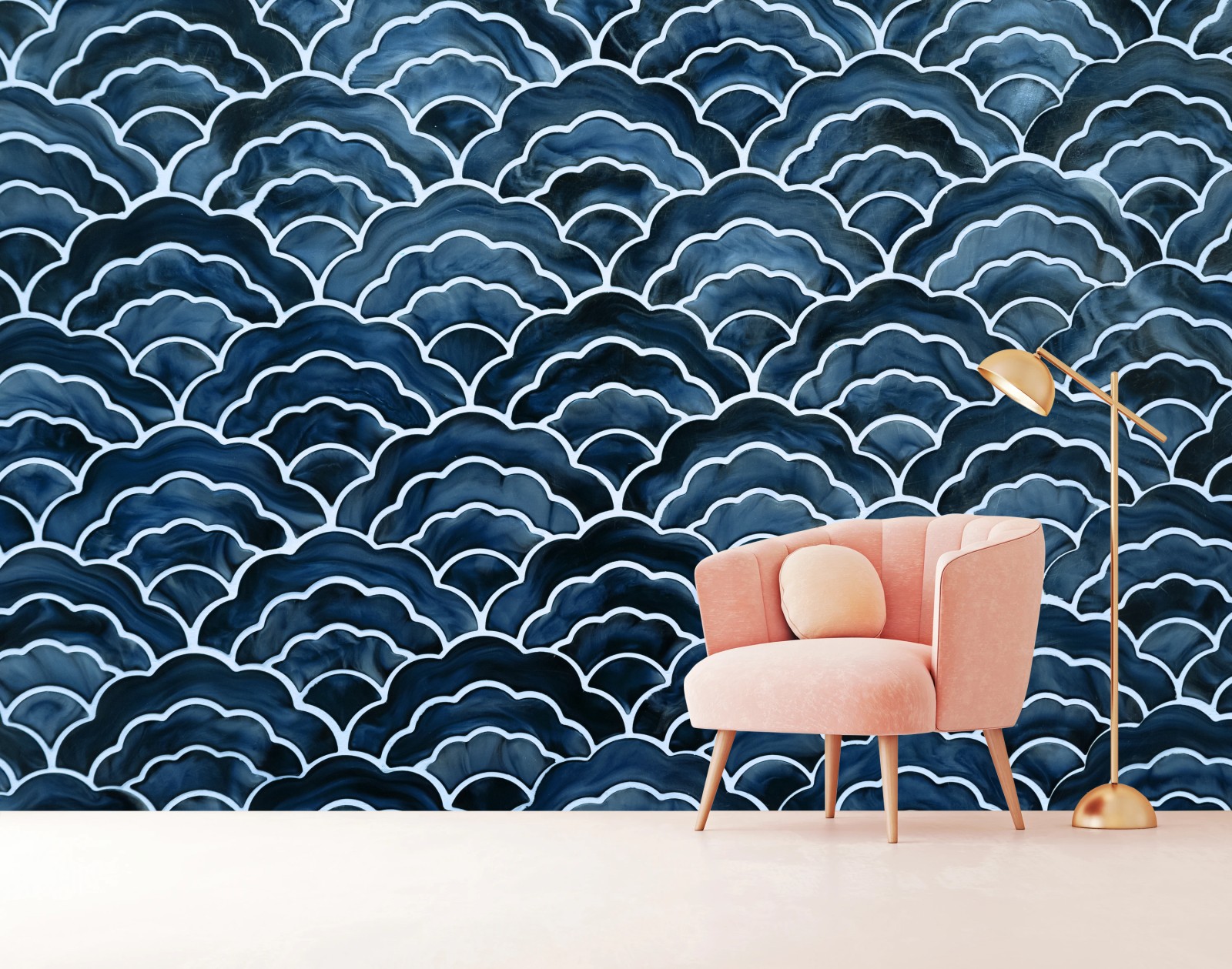 Fototapete Japanisches blaues seigaiha-wellenmuster