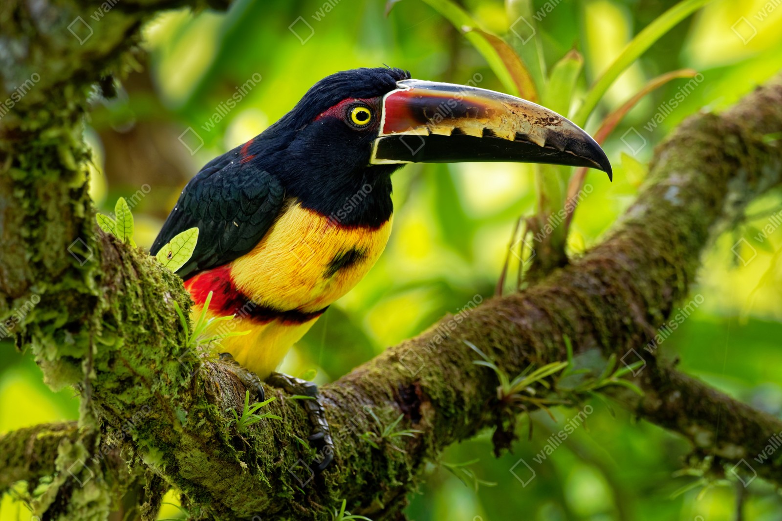 Fototapete leuchtender aracari-tukan im tropischen dschungel
