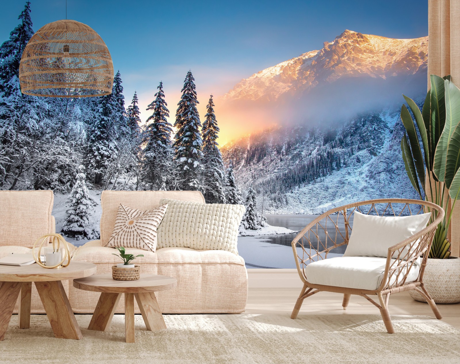 Fototapete Wintermorgen über dem verschneiten bergsee