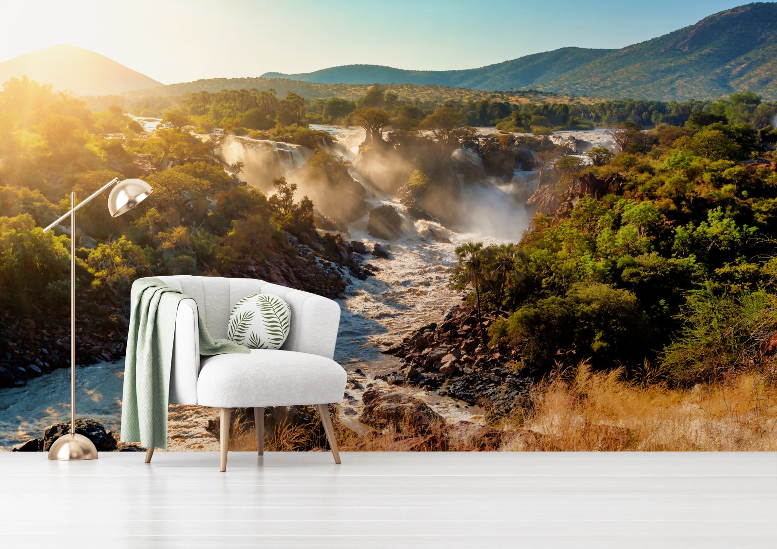 Fototapete Sonnenaufgang über Epupa-wasserfälle
