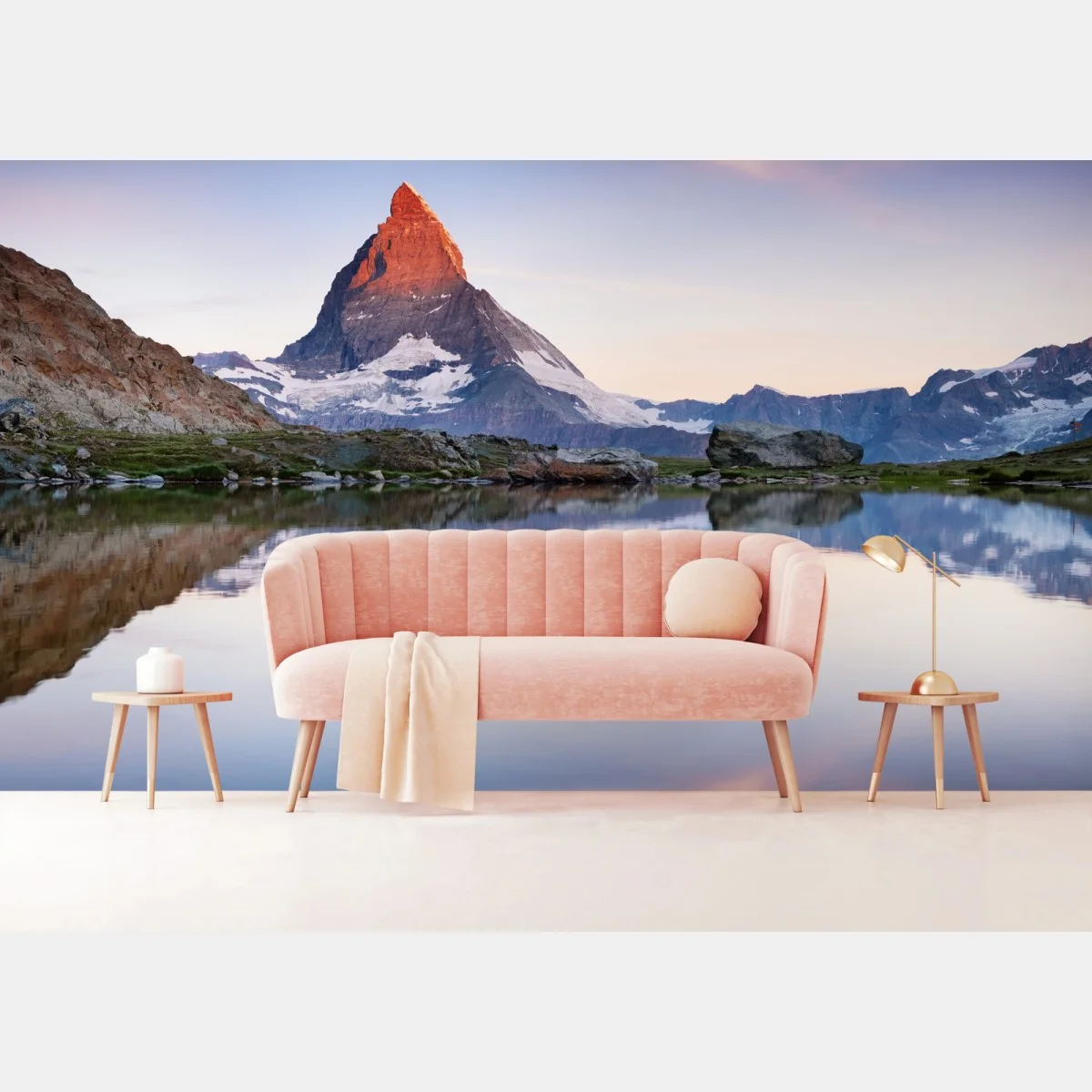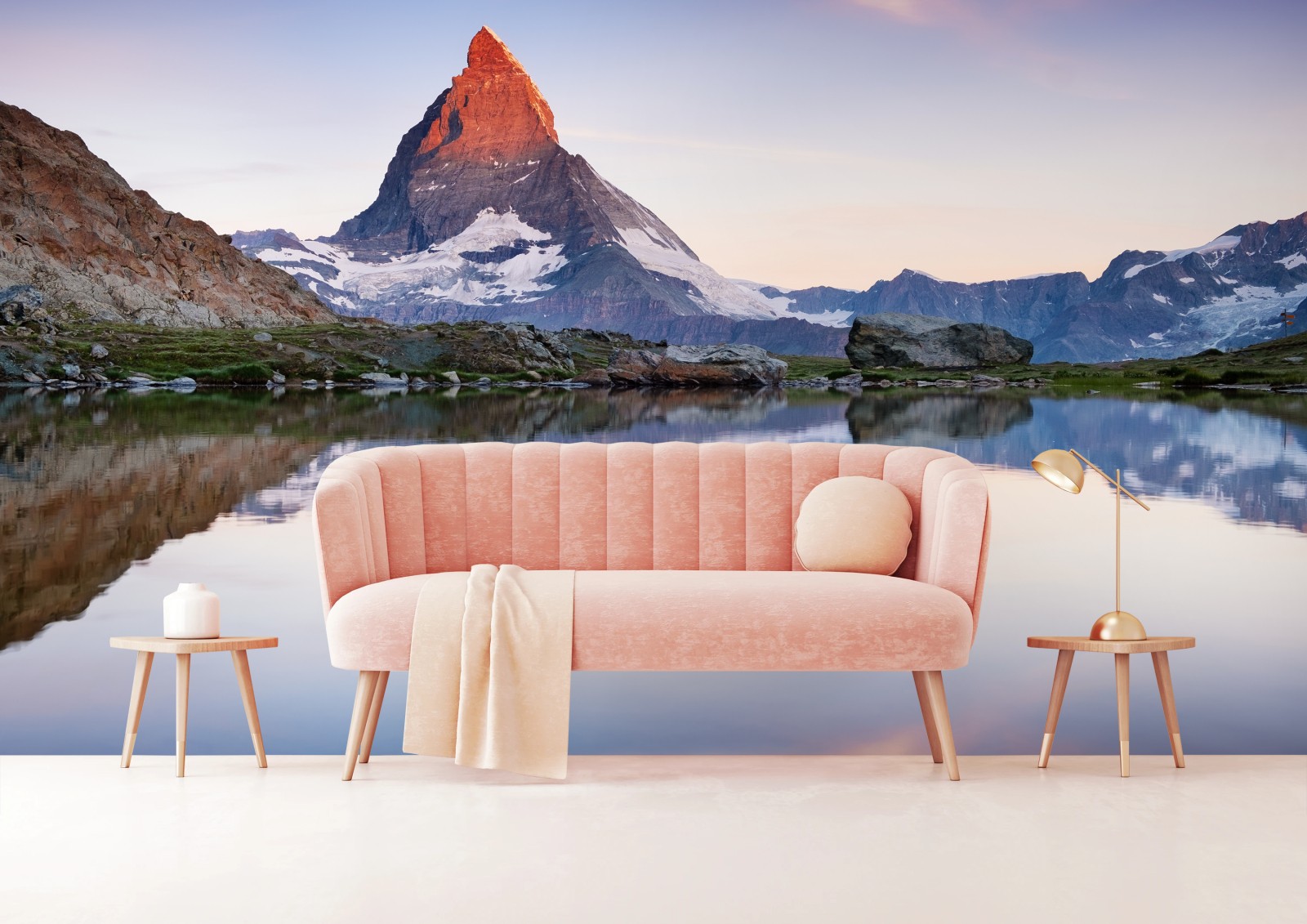 Fototapete Matterhorn bei sonnenaufgang über dem alpensee