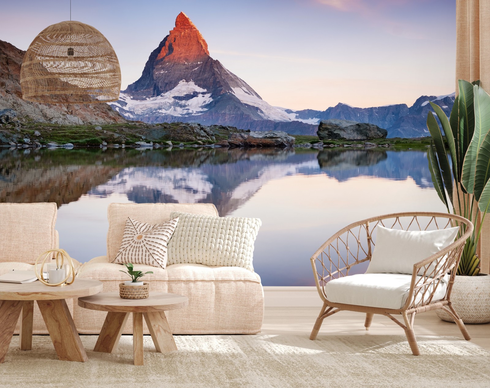 Fototapete Matterhorn bei sonnenaufgang über dem alpensee