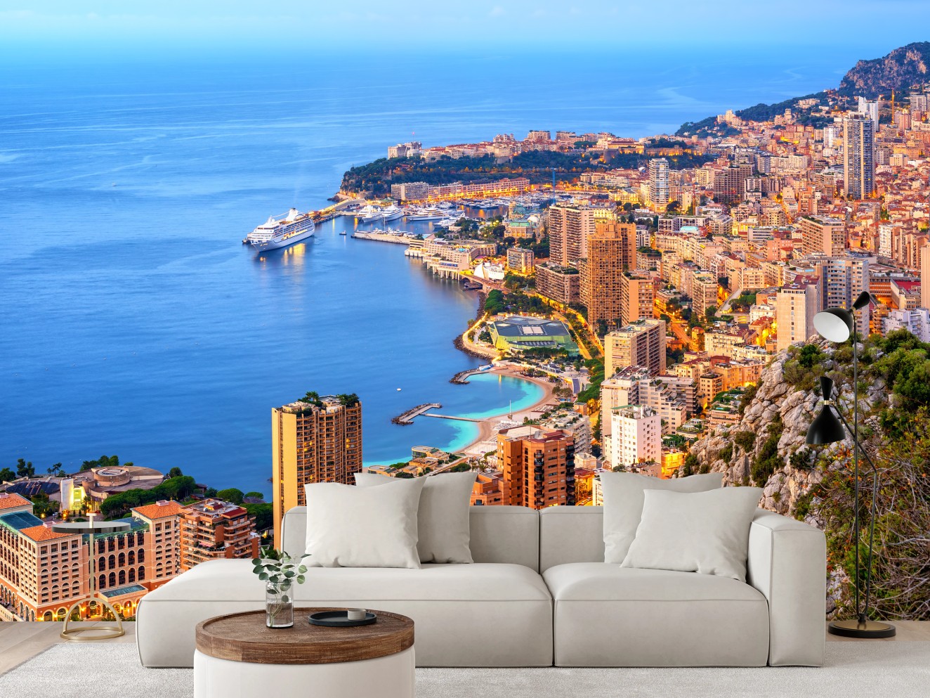 Fototapete Monaco küstenstadt panorama bei dämmerung